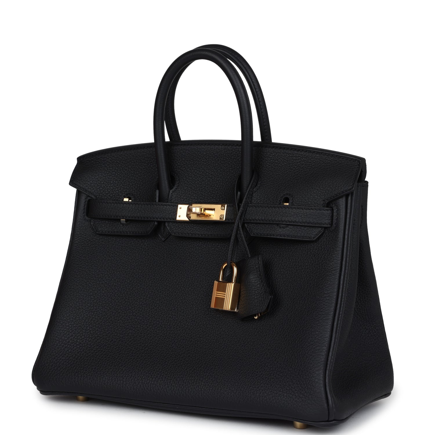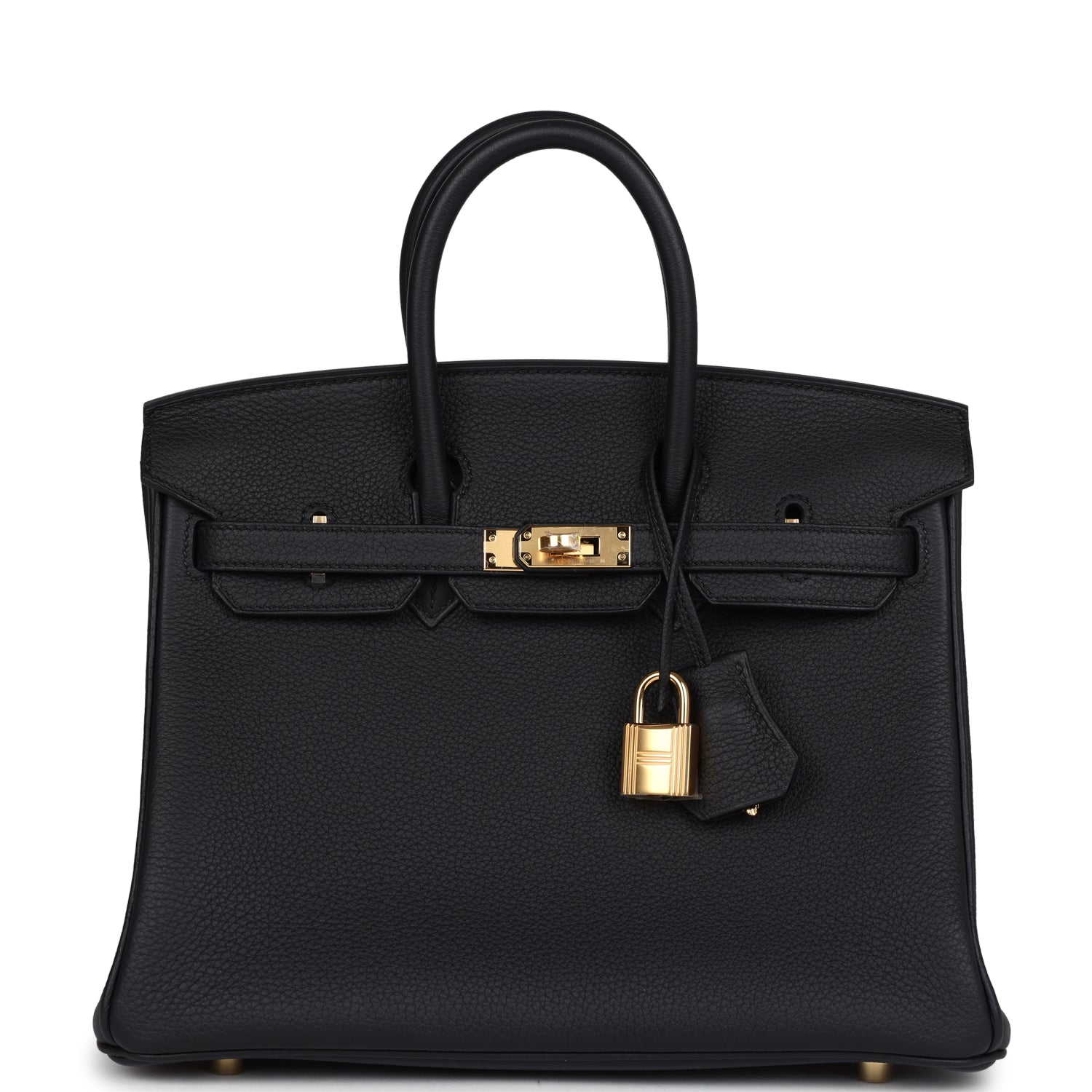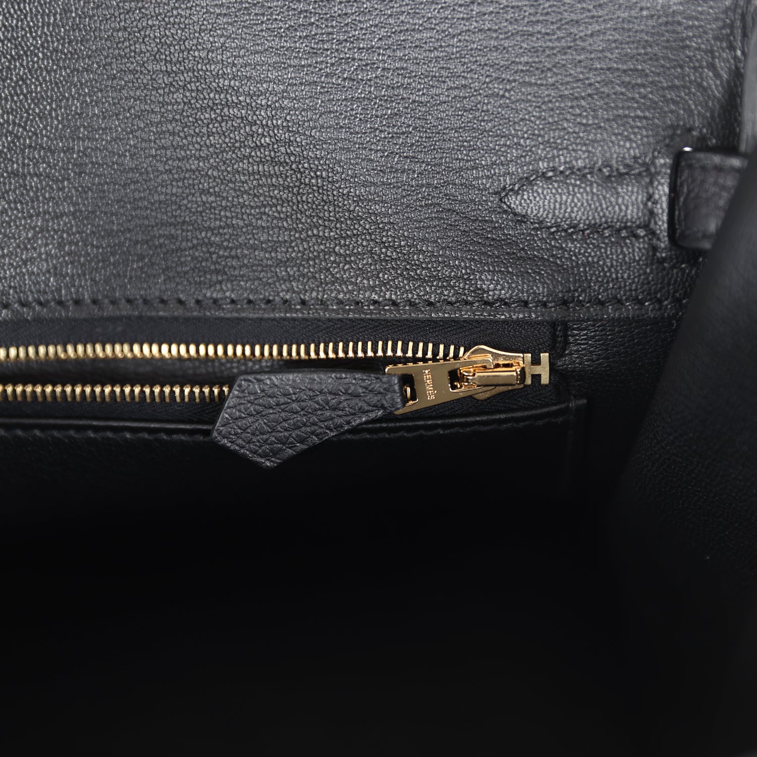 This Birkin is in Black togo leather with gold hardware and has tonal stitching, front flap, two straps with center toggle closure, clochette with lock and two keys, and double rolled handles.