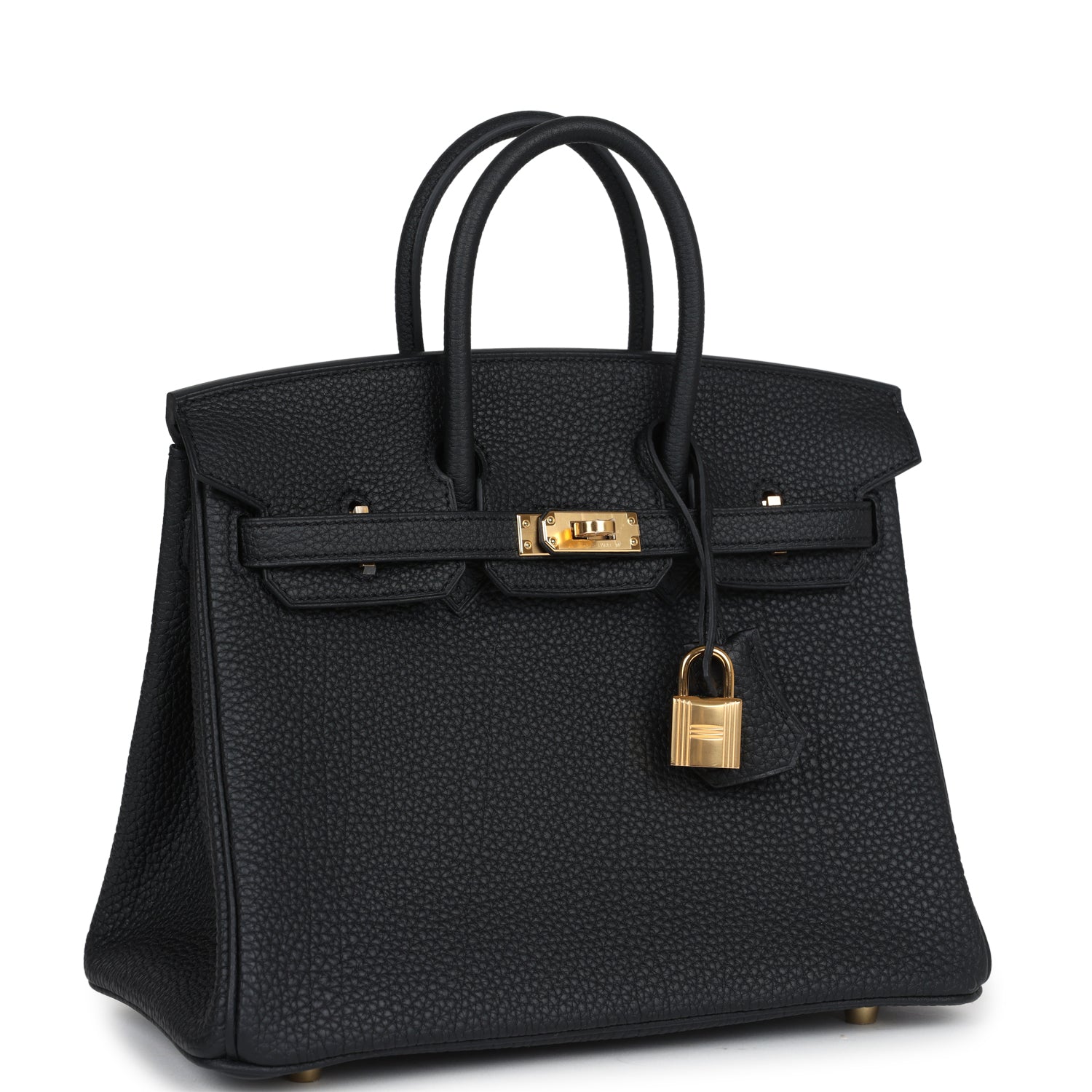 This Birkin is in Black togo leather with gold hardware and has tonal stitching, front flap, two straps with center toggle closure, clochette with lock and two keys, and double rolled handles.