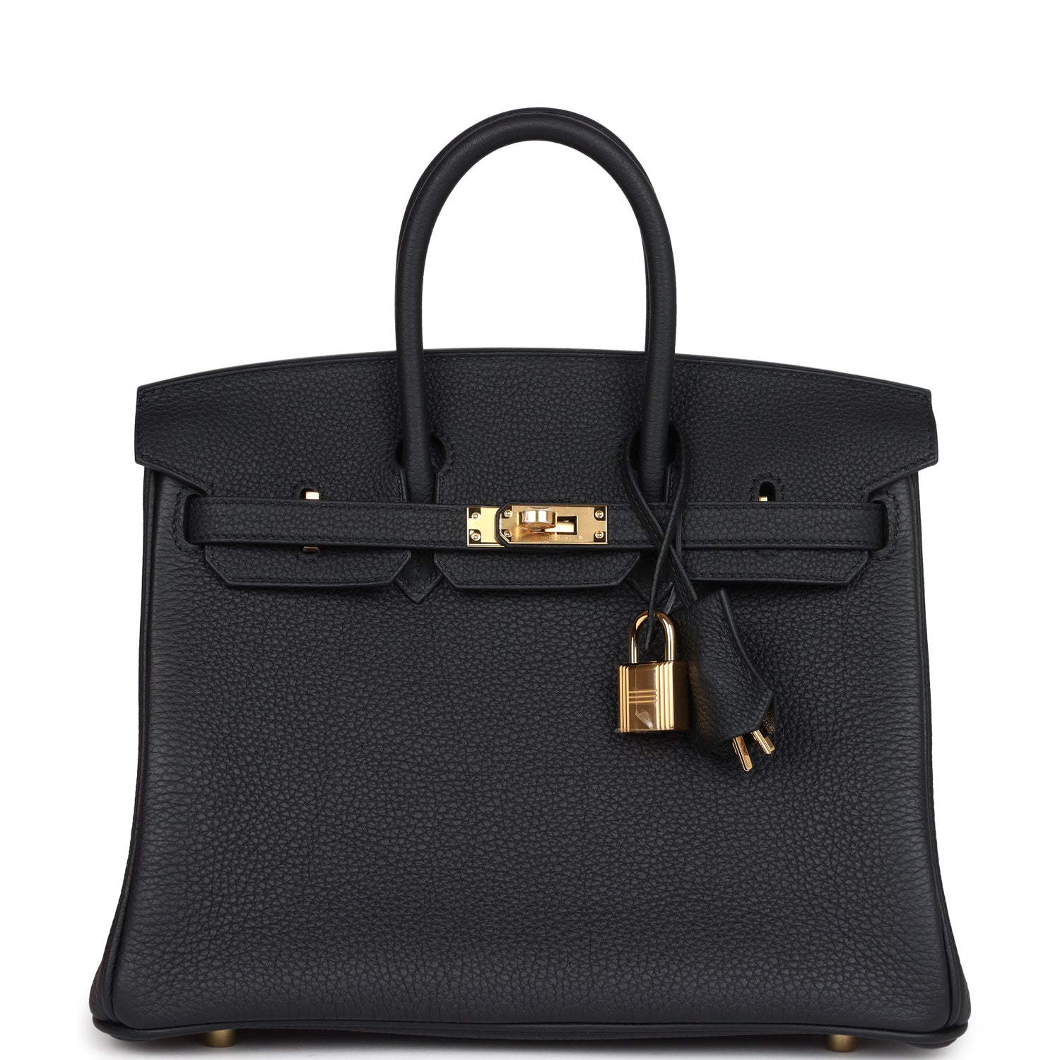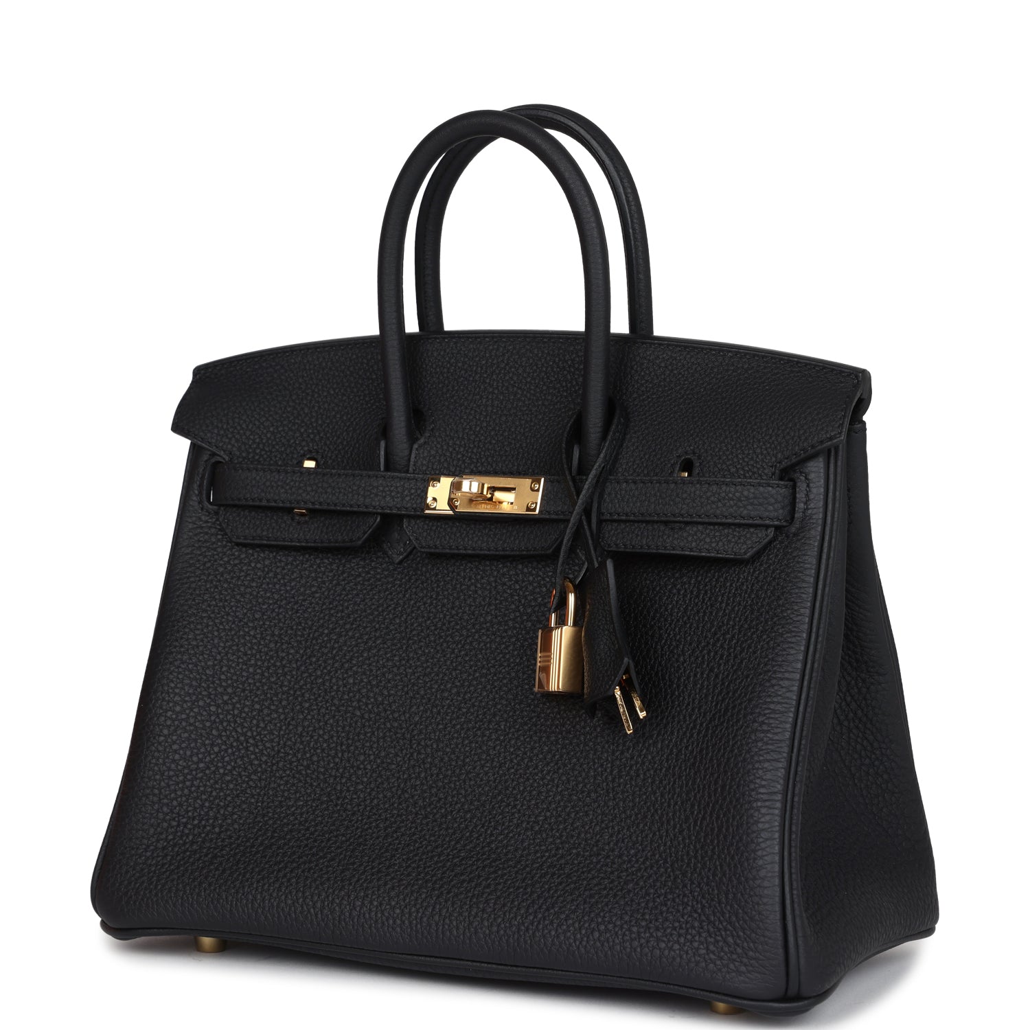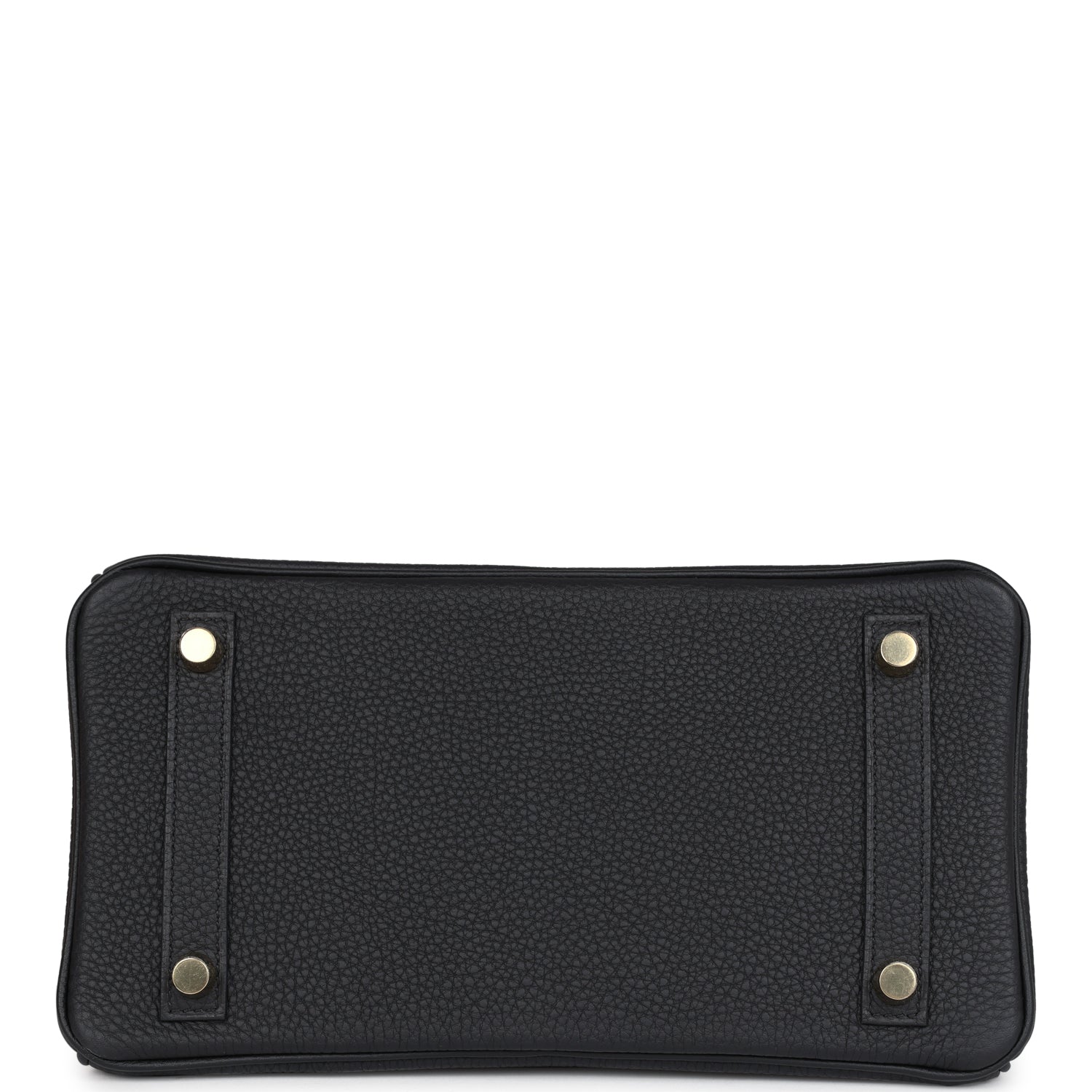This Birkin is in Black togo leather with gold hardware and has tonal stitching, front flap, two straps with center toggle closure, clochette with lock and two keys, and double rolled handles.