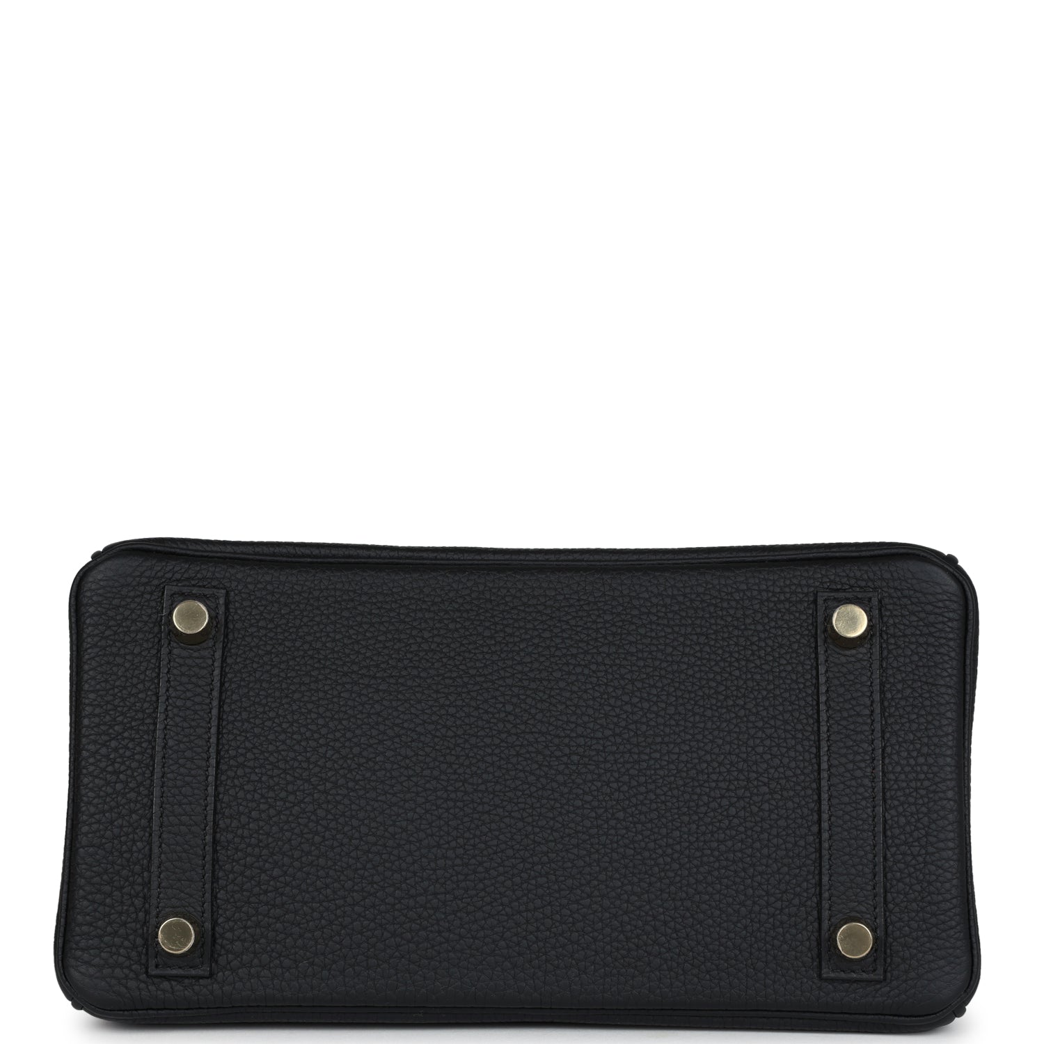 This Birkin is in Black togo leather with gold hardware and has tonal stitching, front flap, two straps with center toggle closure, clochette with lock and two keys, and double rolled handles.