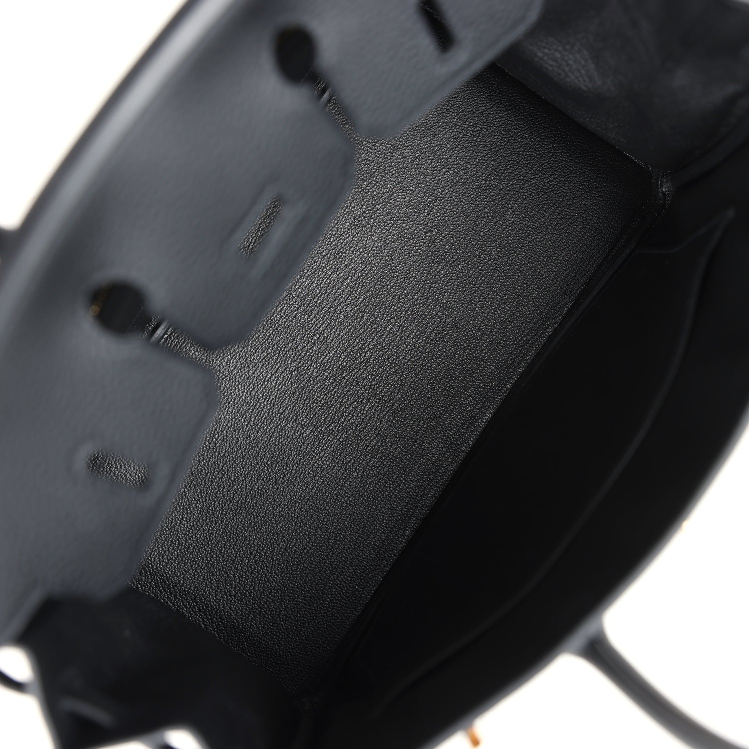 The interior is lined with Black chevre and has a zip pocket with an Hermes engraved zipper pull and an open pocket on the opposite side.