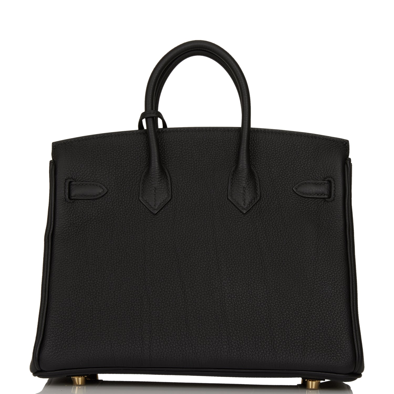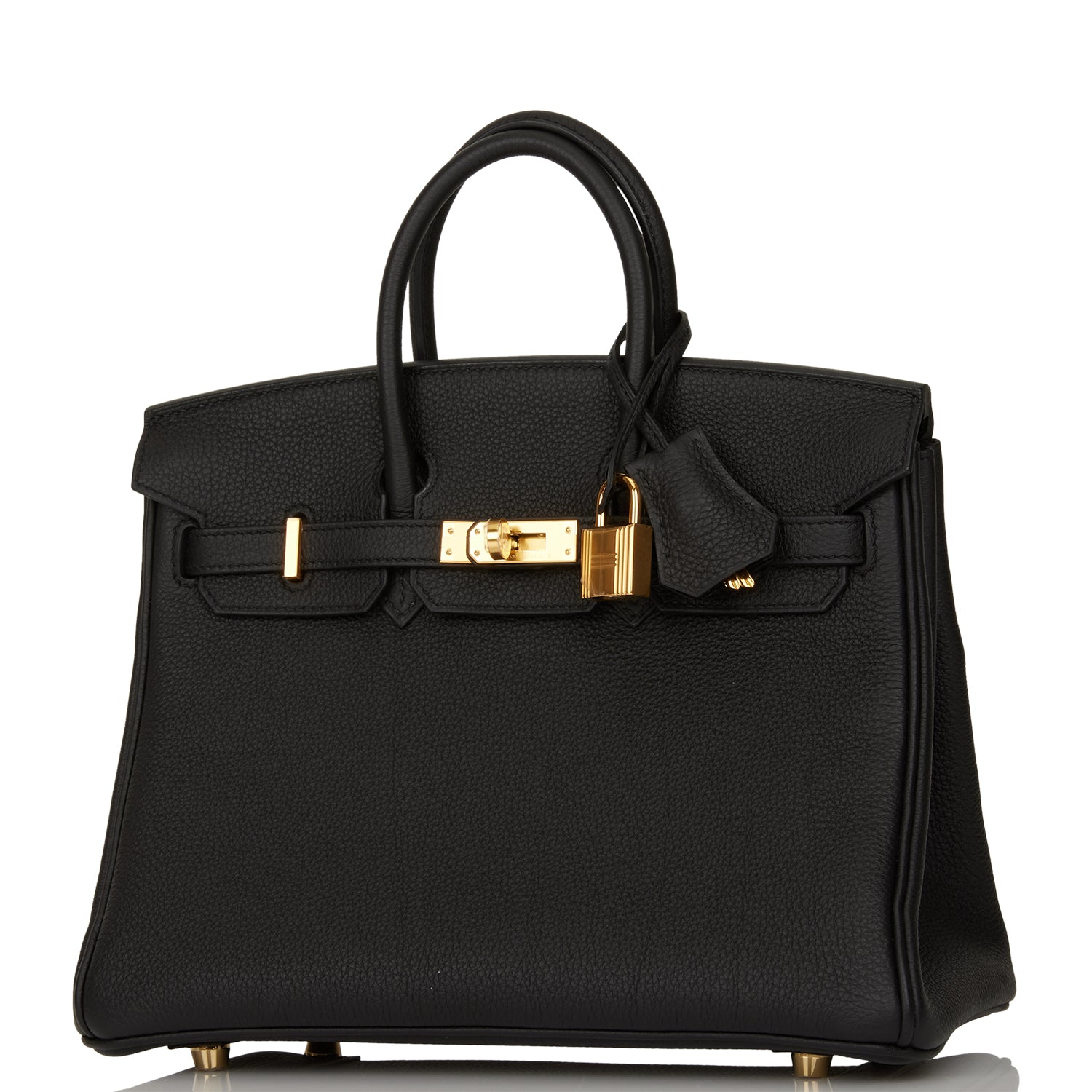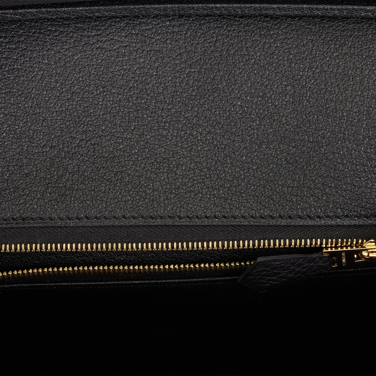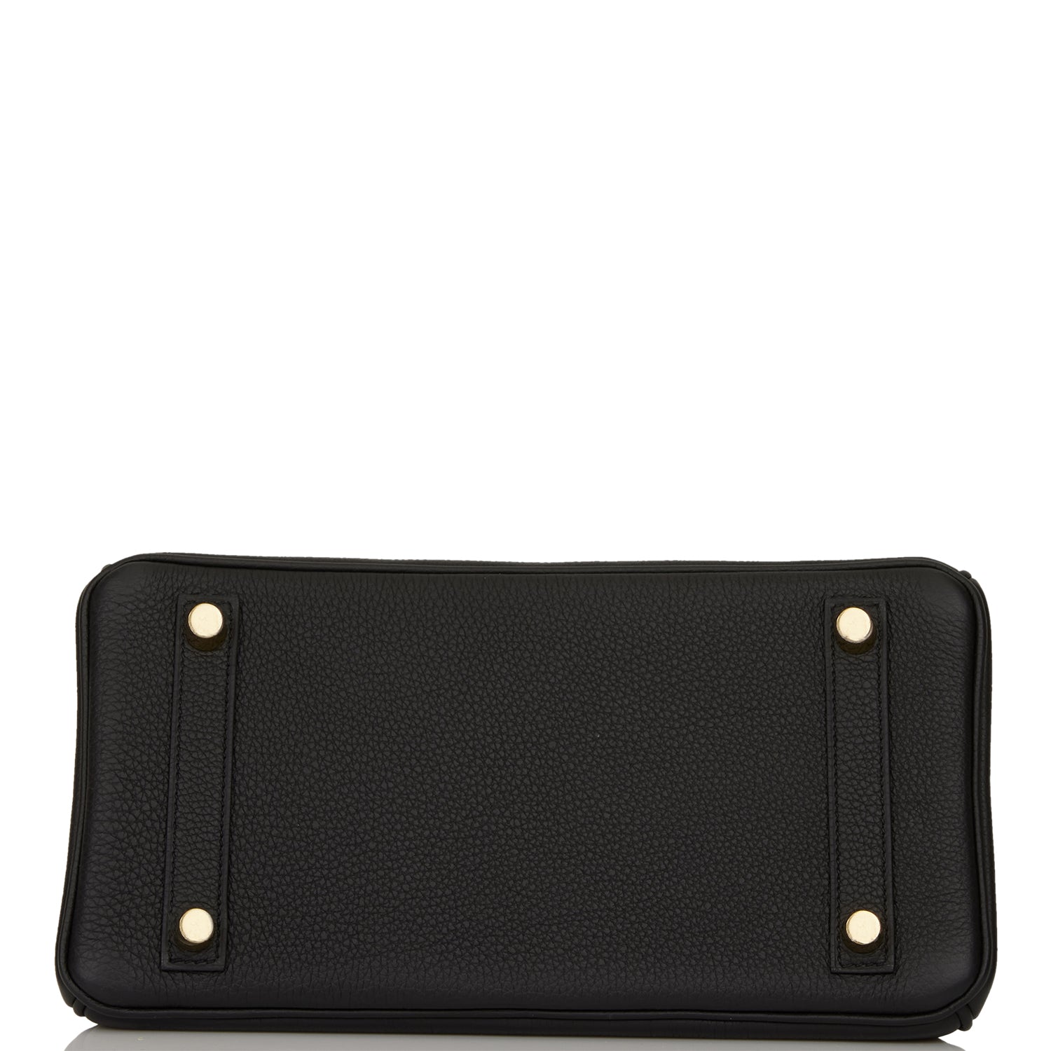 This Birkin is in Black togo leather with gold hardware and has tonal stitching, front flap, two straps with center toggle closure, clochette with lock and two keys, and double rolled handles.