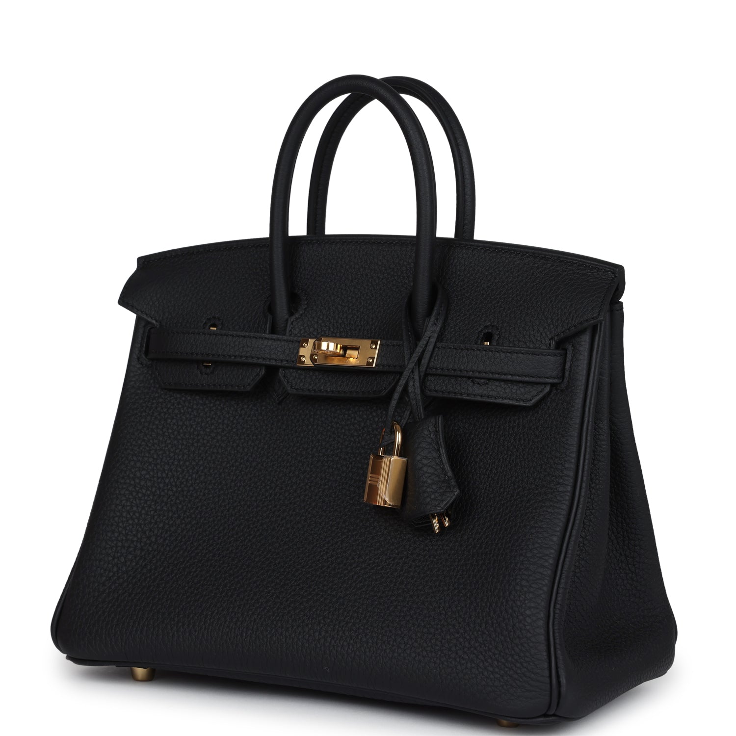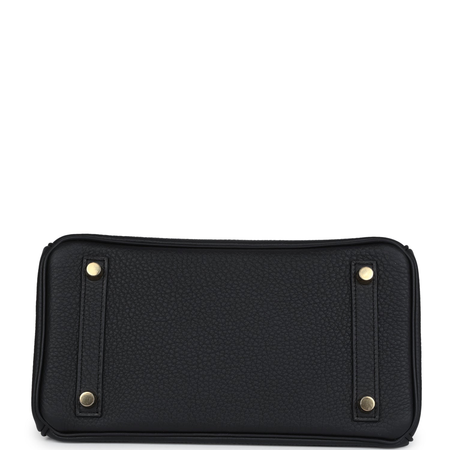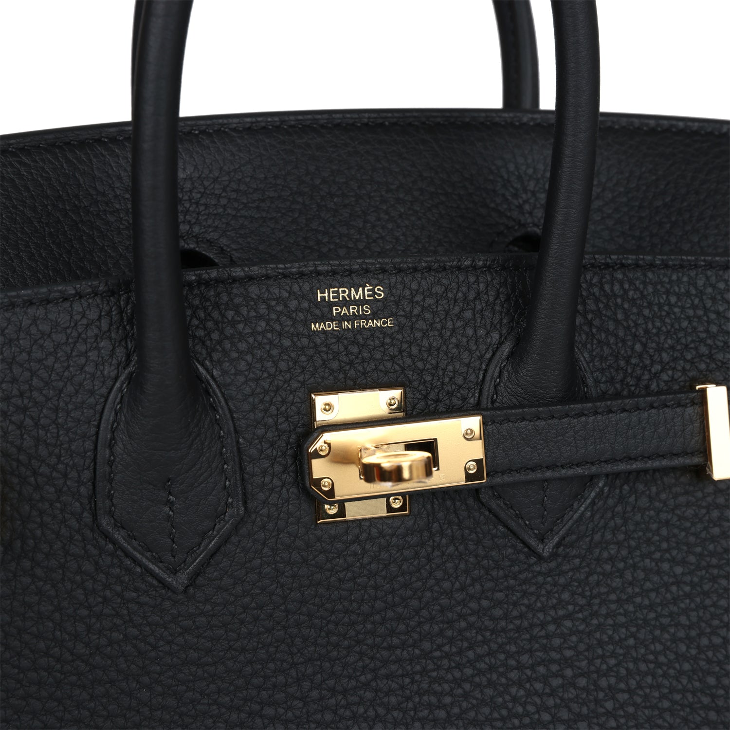 This Birkin is in Black togo leather with gold hardware and has tonal stitching, front flap, two straps with center toggle closure, clochette with lock and two keys, and double rolled handles.