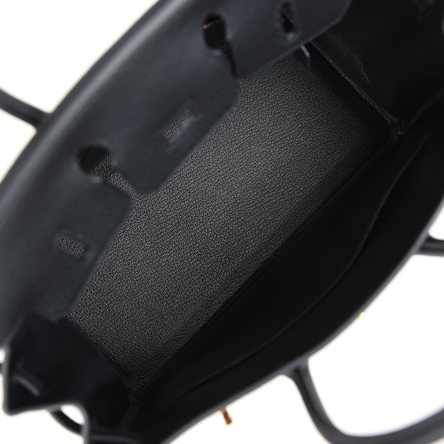 The interior is lined with Black chevre and has a zip pocket with an Hermes engraved zipper pull and an open pocket on the opposite side.