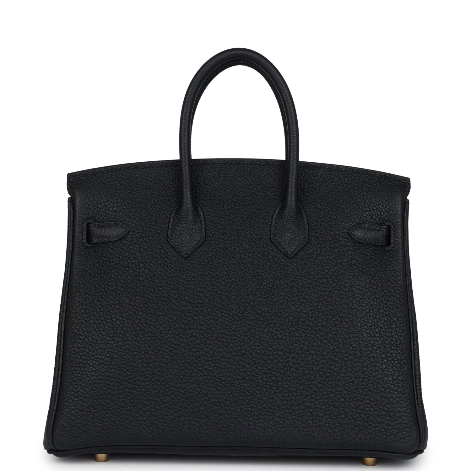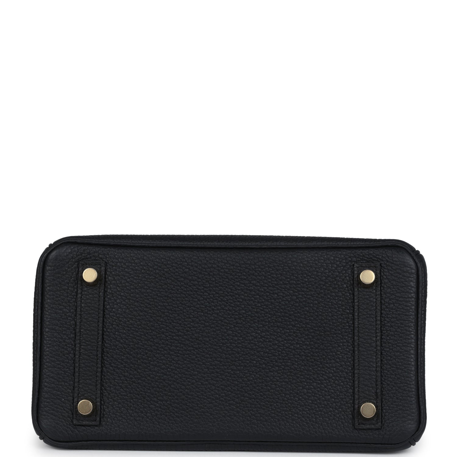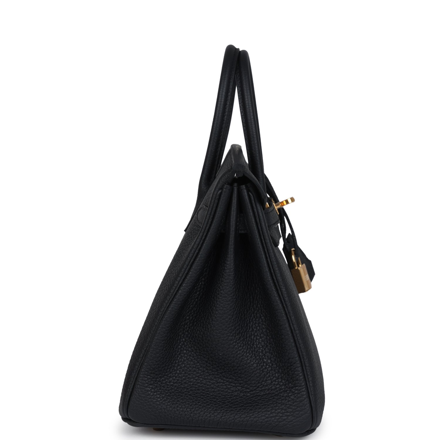 This Birkin is in Black togo leather with gold hardware, has tonal stitching, front flap, two straps with center toggle closure, clochette with lock and two keys, and double rolled handles.