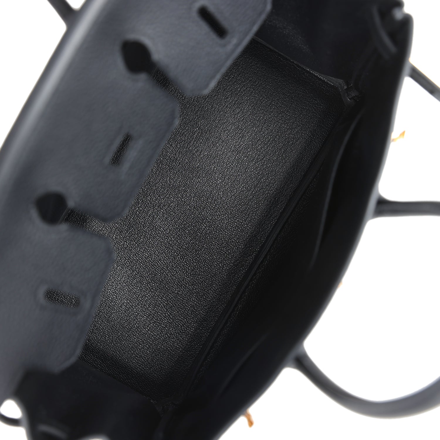 The interior is lined with Black chevre and has a zip pocket with an Hermes engraved zipper pull and an open pocket on the opposite side.