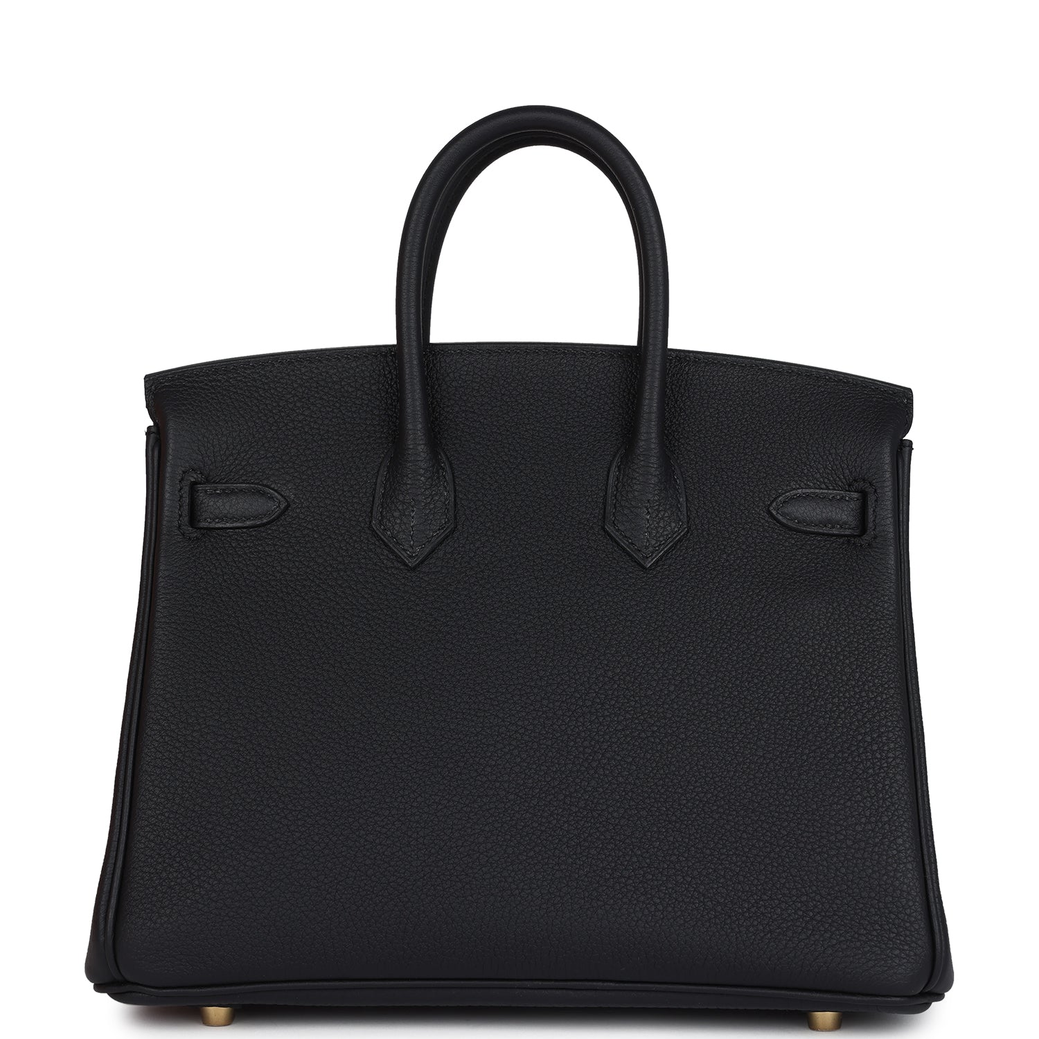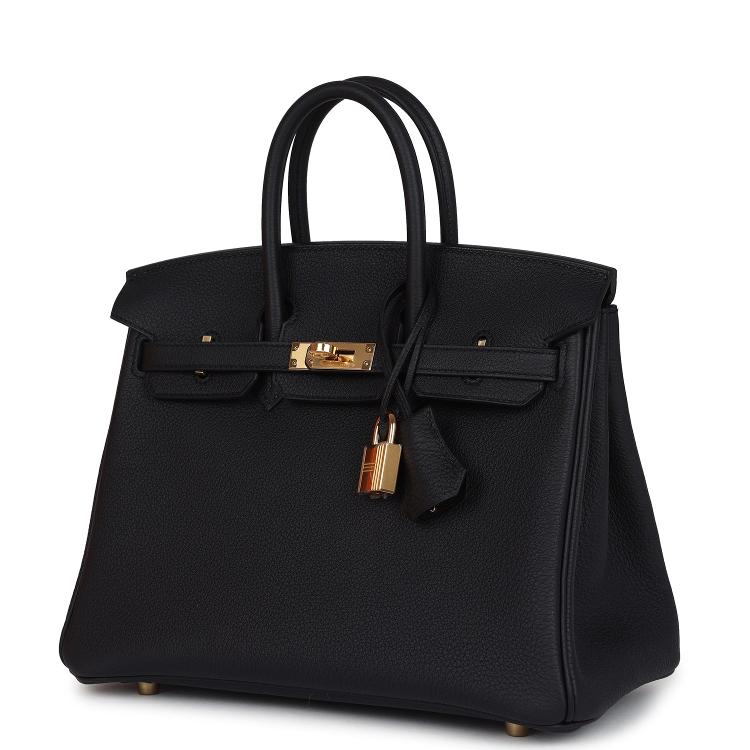 This Birkin is in Black togo leather with gold hardware, has tonal stitching, front flap, two straps with center toggle closure, clochette with lock and two keys, and double rolled handles.