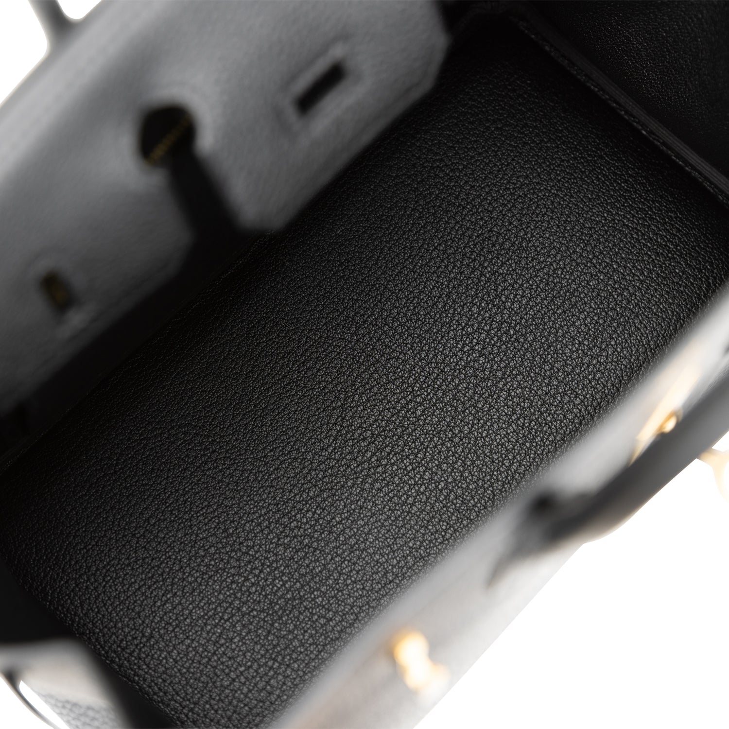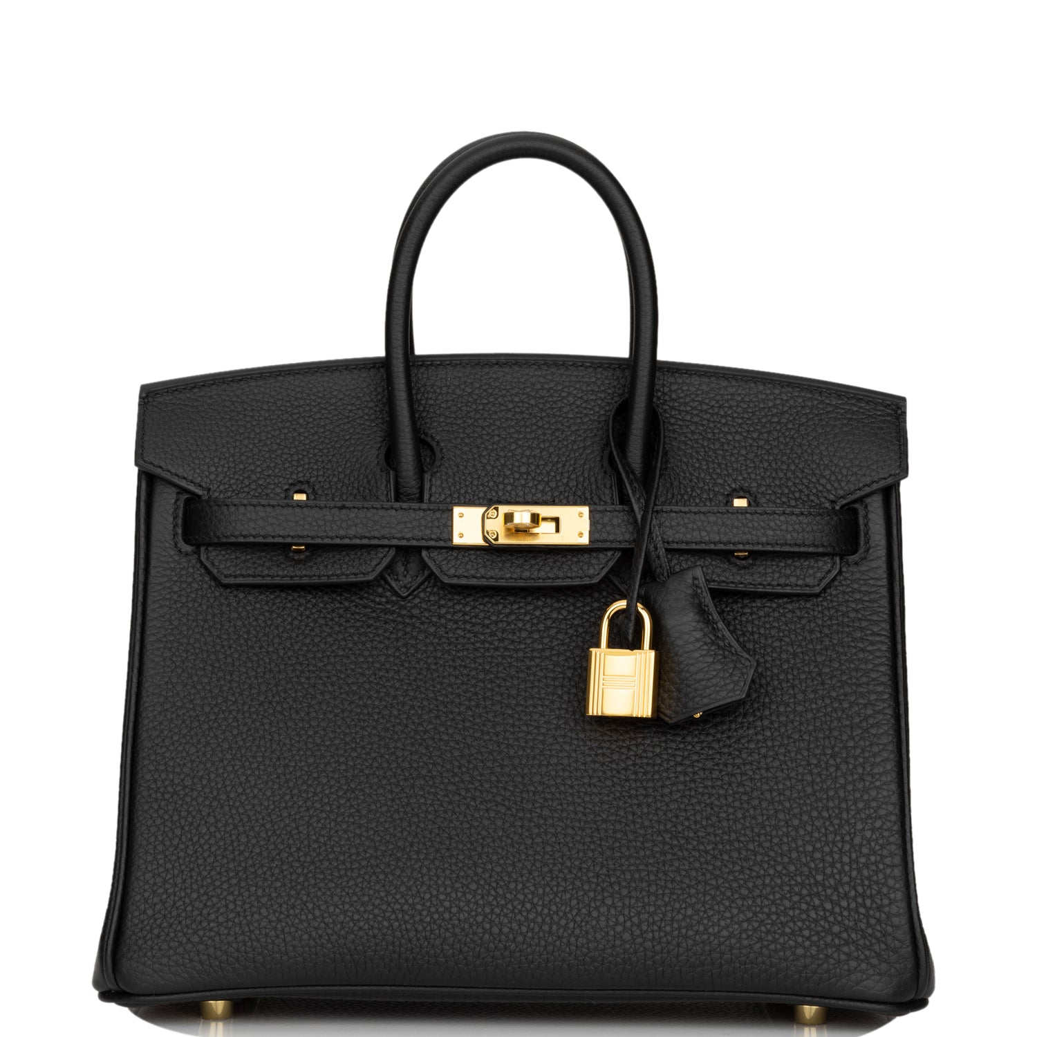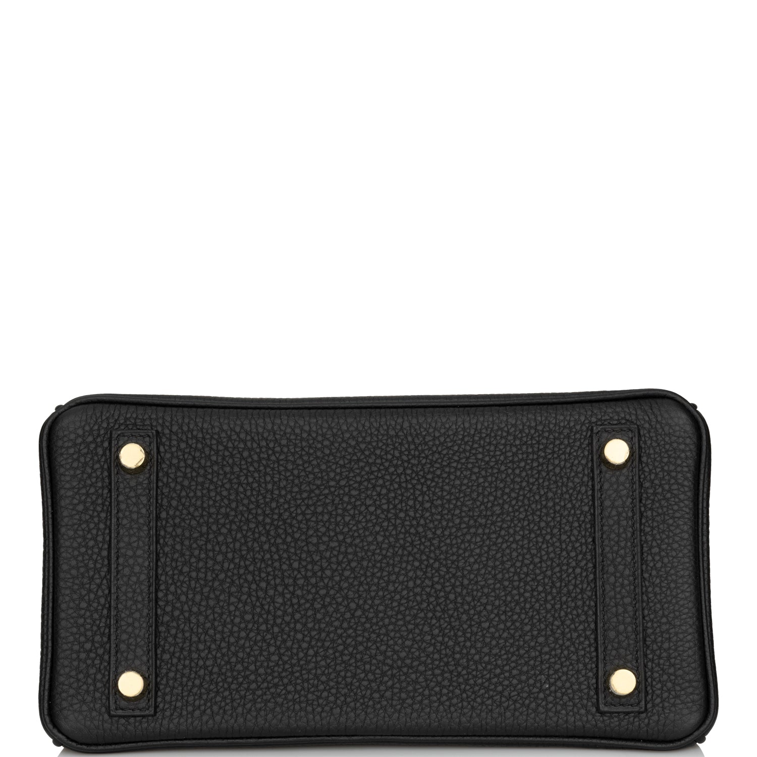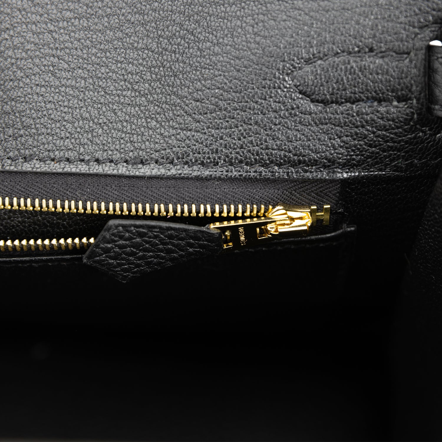 This Birkin is in Black togo leather with gold hardware and has tonal stitching, front flap, two straps with center toggle closure, clochette with lock and two keys, and double rolled handles.