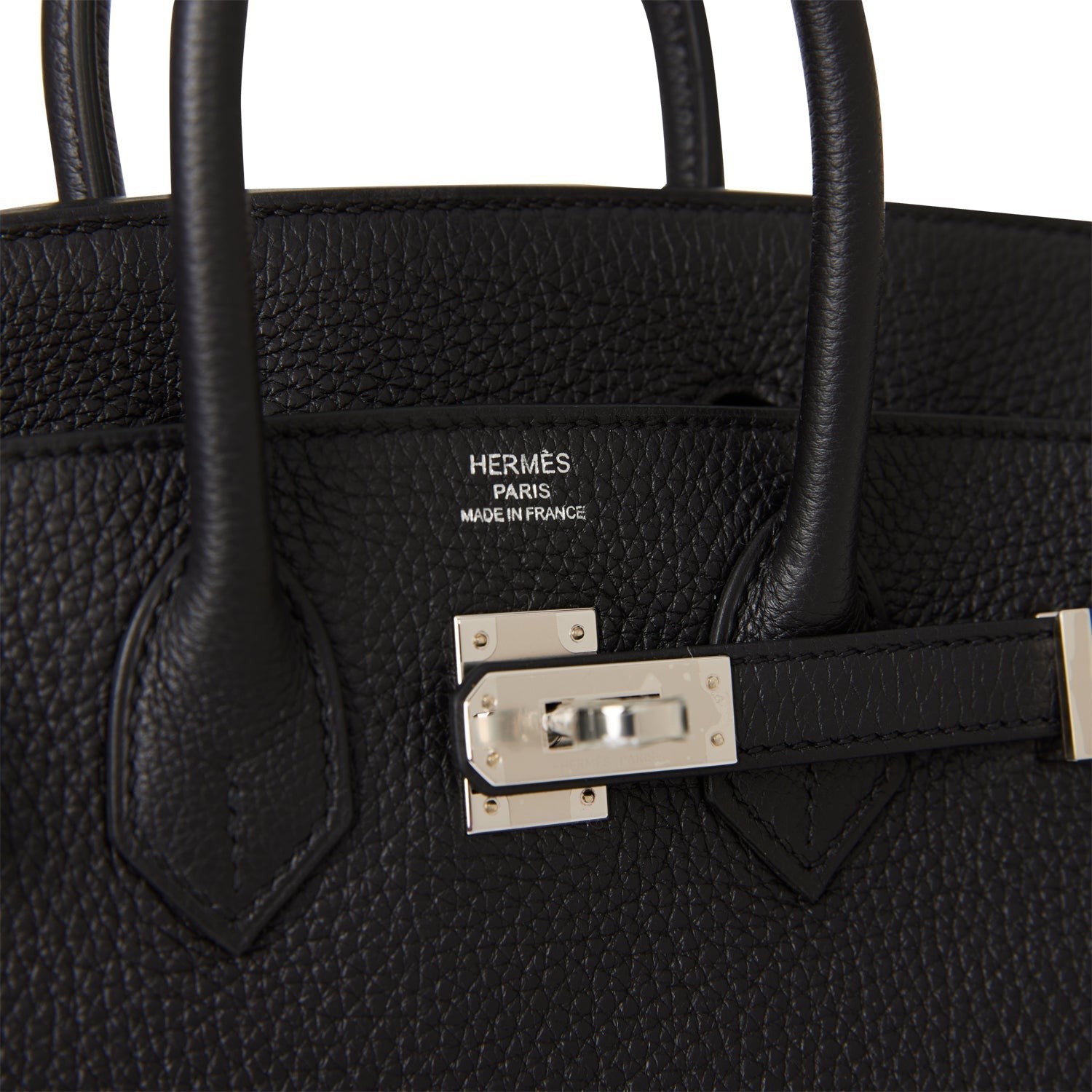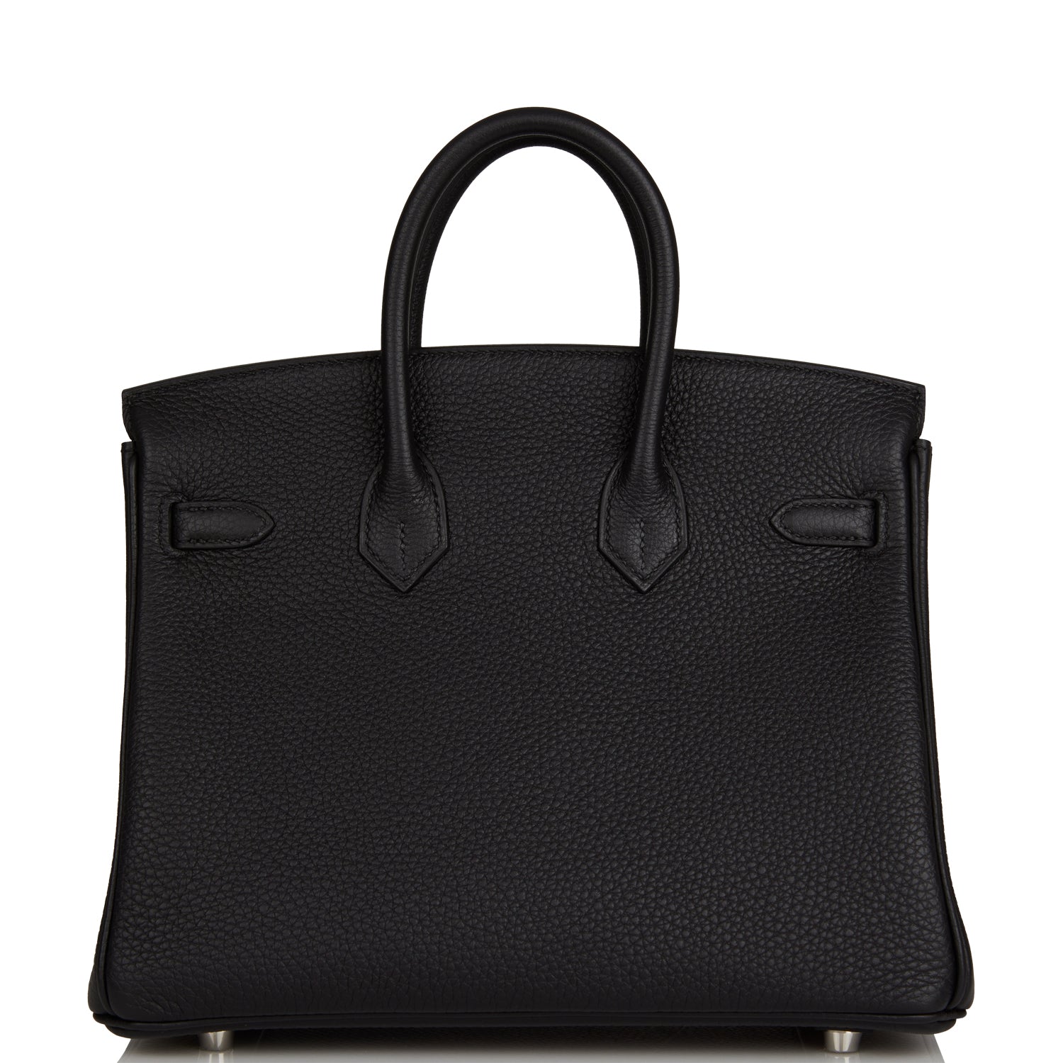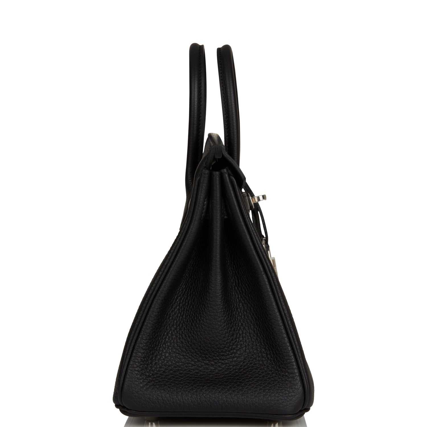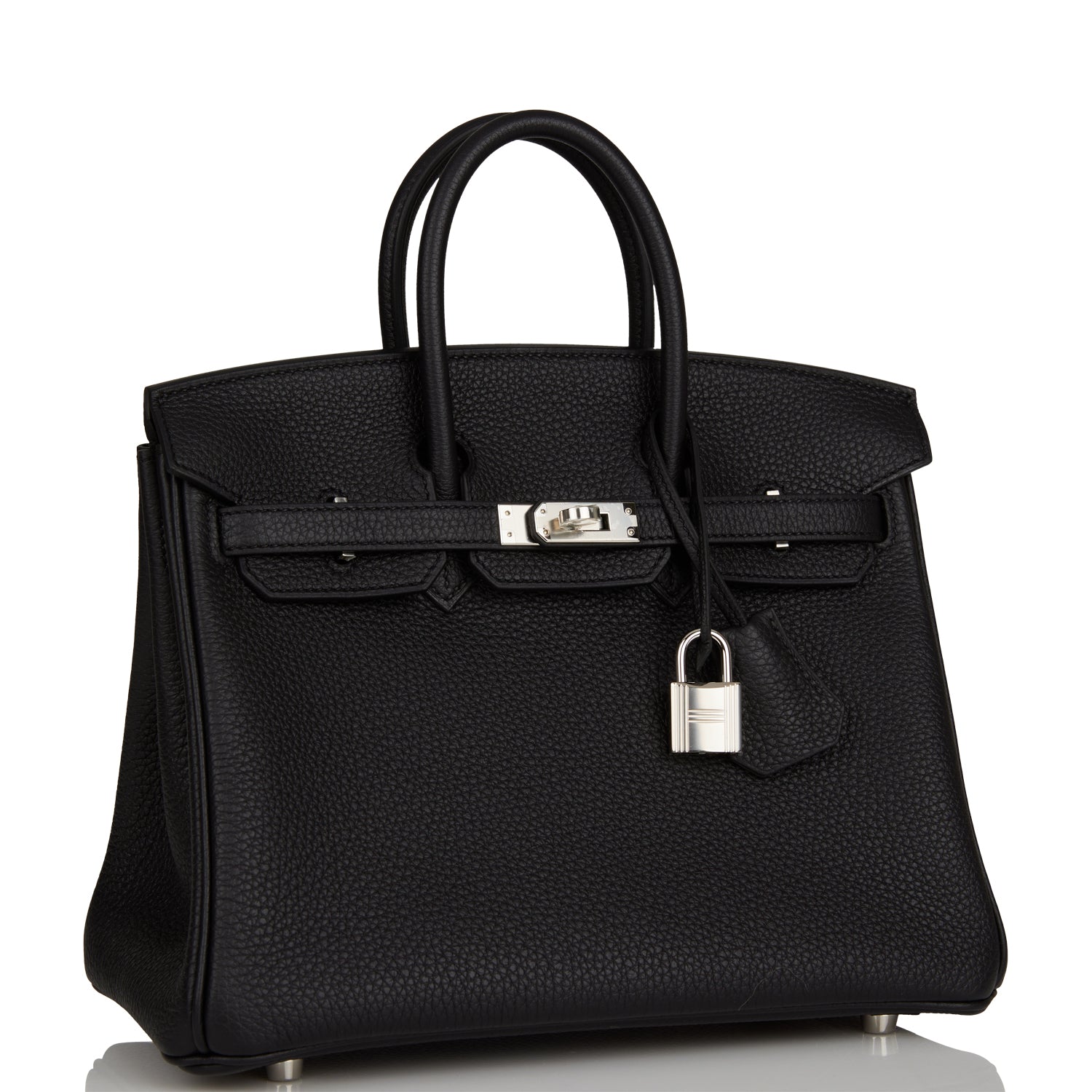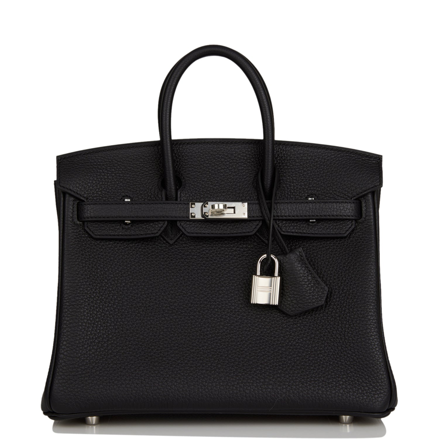 This Birkin is in Black togo leather with palladium hardware and has tonal stitching, front flap, two straps with center toggle closure, clochette with lock and two keys, and double rolled handles.