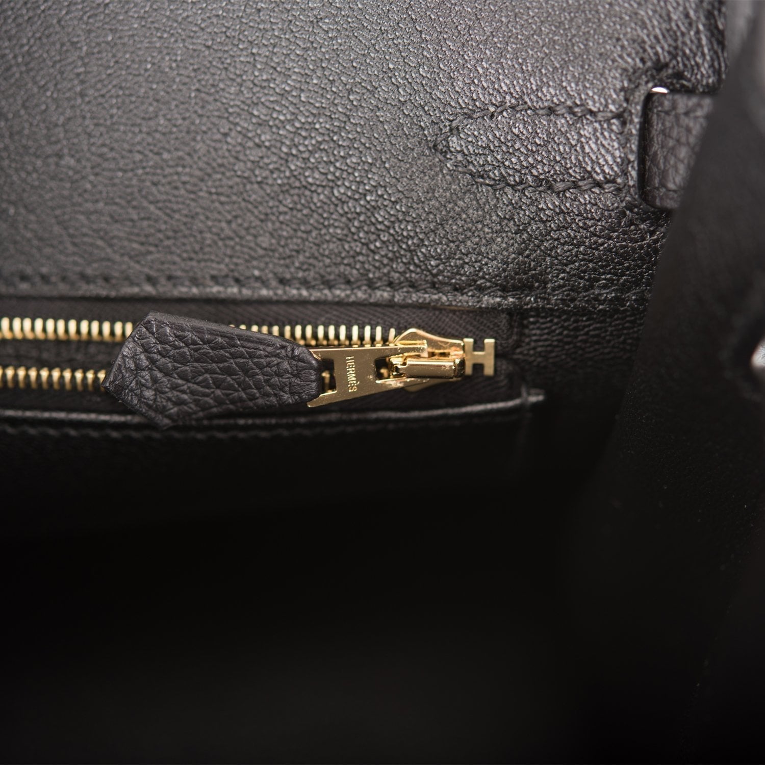 This Birkin is in Black togo leather with rose gold hardware and has tonal stitching, front flap, two straps with center toggle closure, clochette with lock and two keys, and double rolled handles.