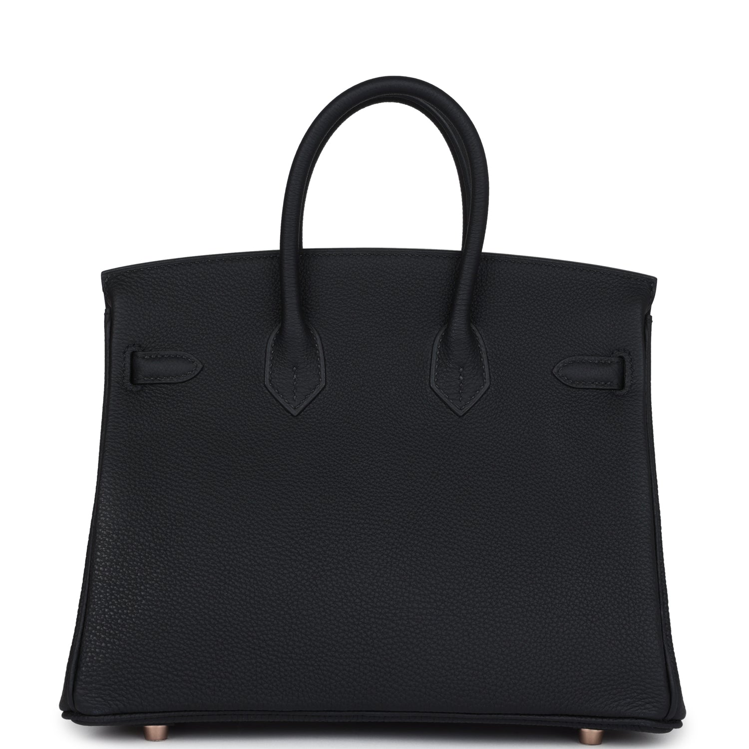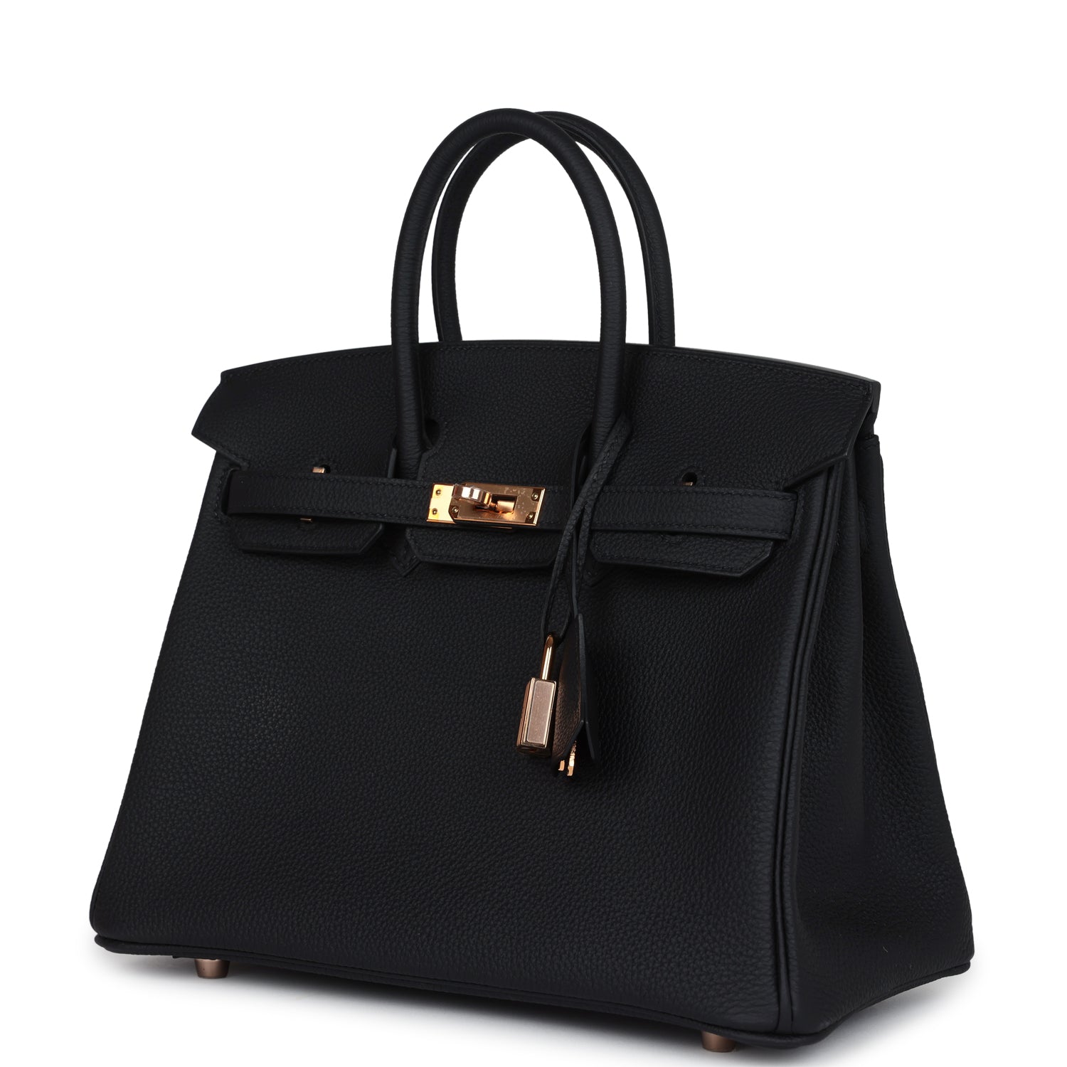 This Hermes Birkin is in Black togo leather with rose gold hardware tonal stitching, front flap with two straps, front toggle closure, clochette with lock and two keys, and double rolled handles.