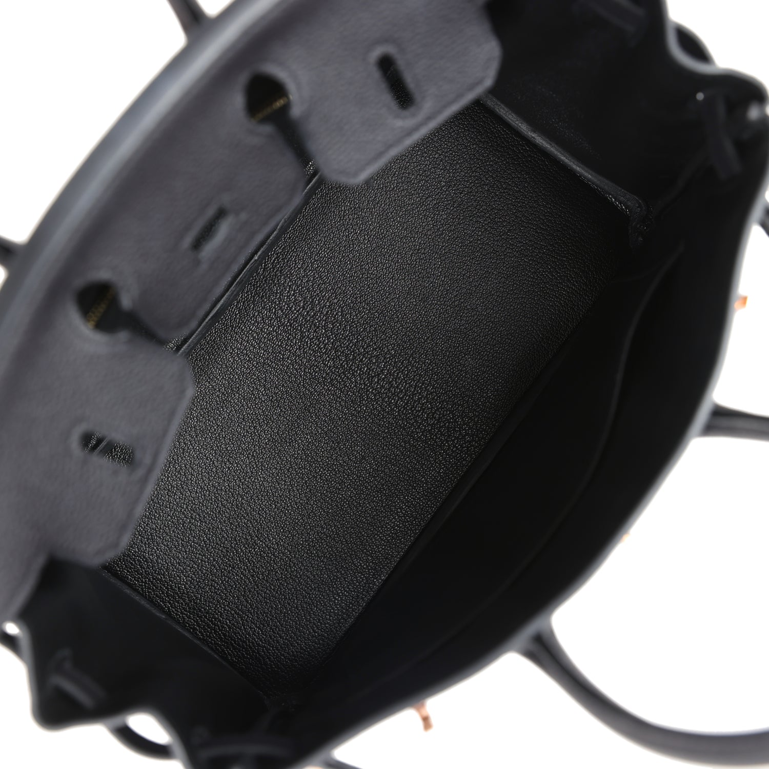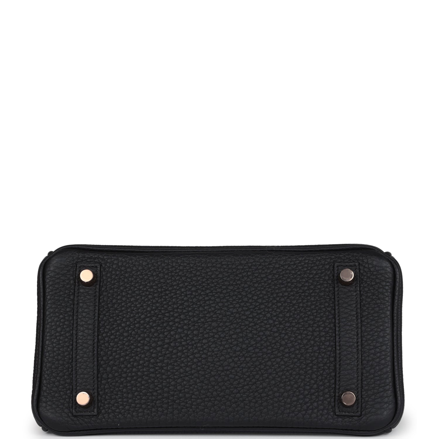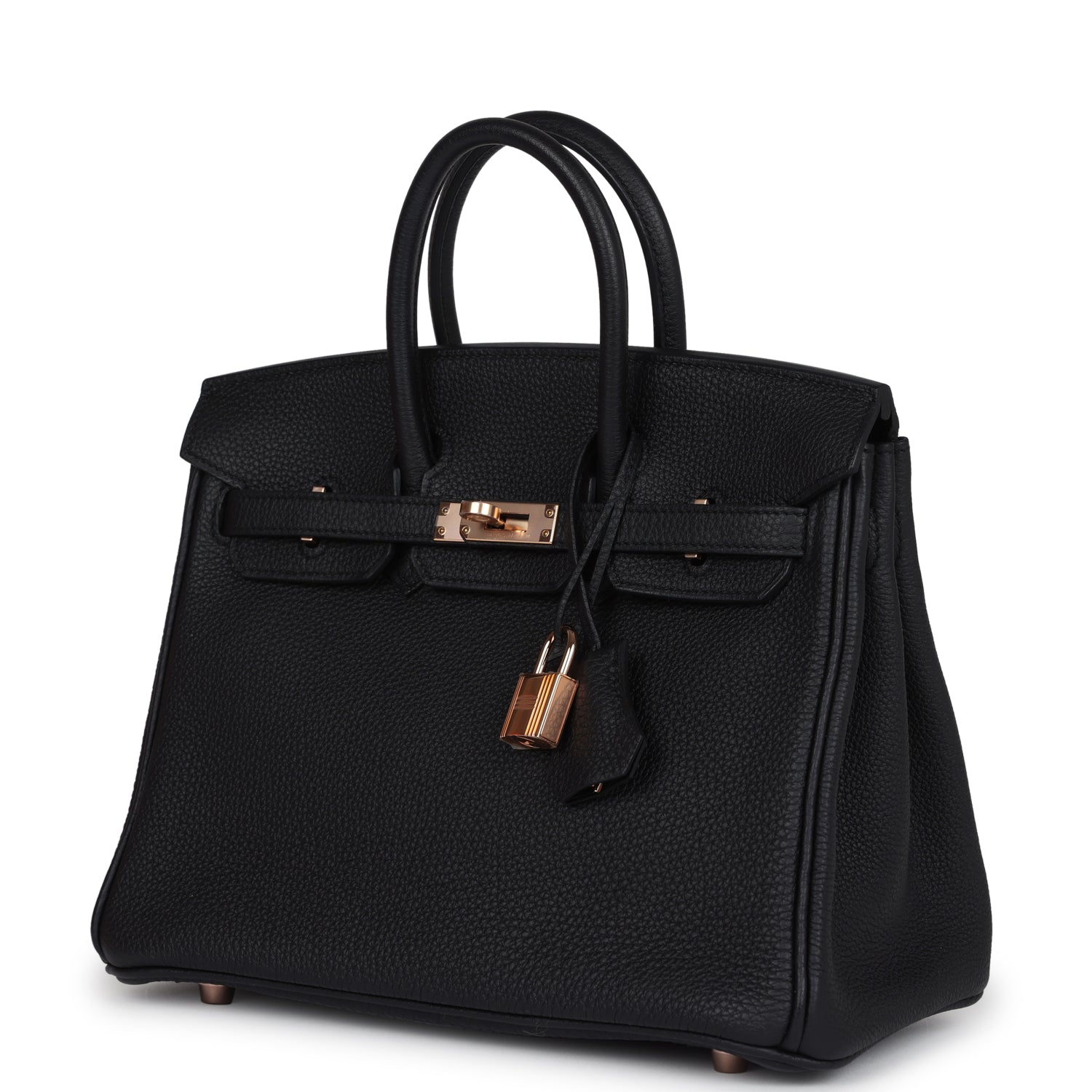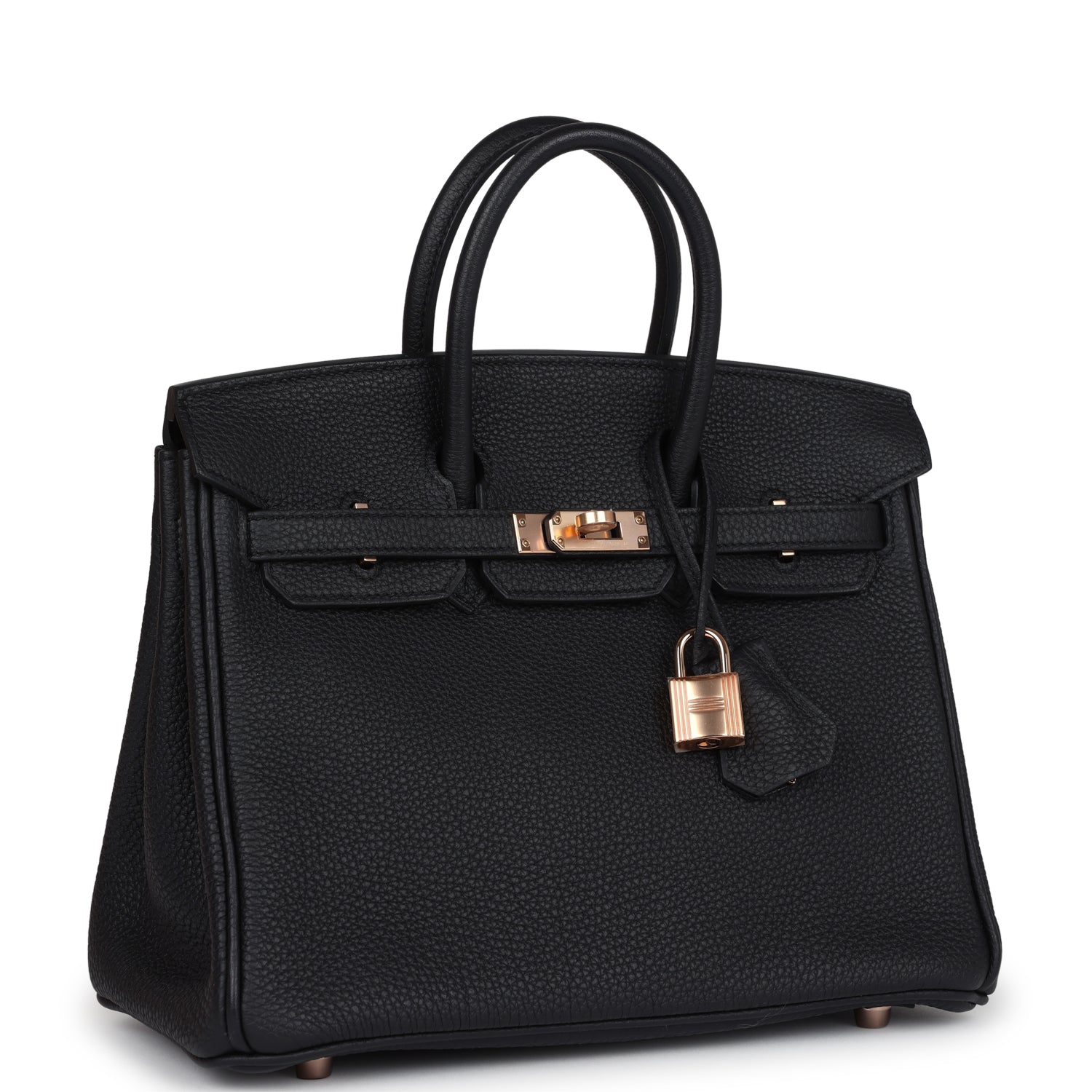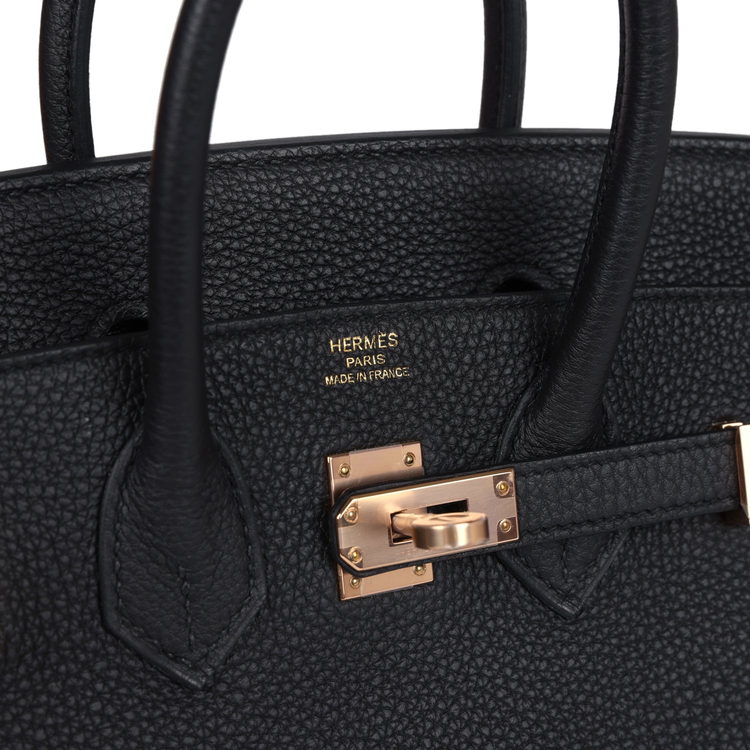 This Hermes Birkin is in Black togo leather with rose gold hardware tonal stitching, front flap with two straps, front toggle closure, clochette with lock and two keys, and double rolled handles.