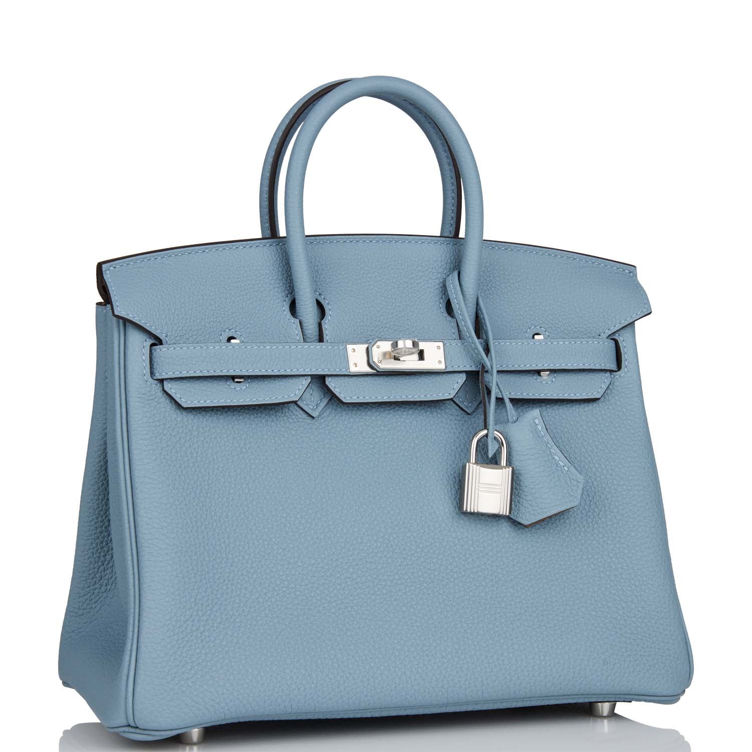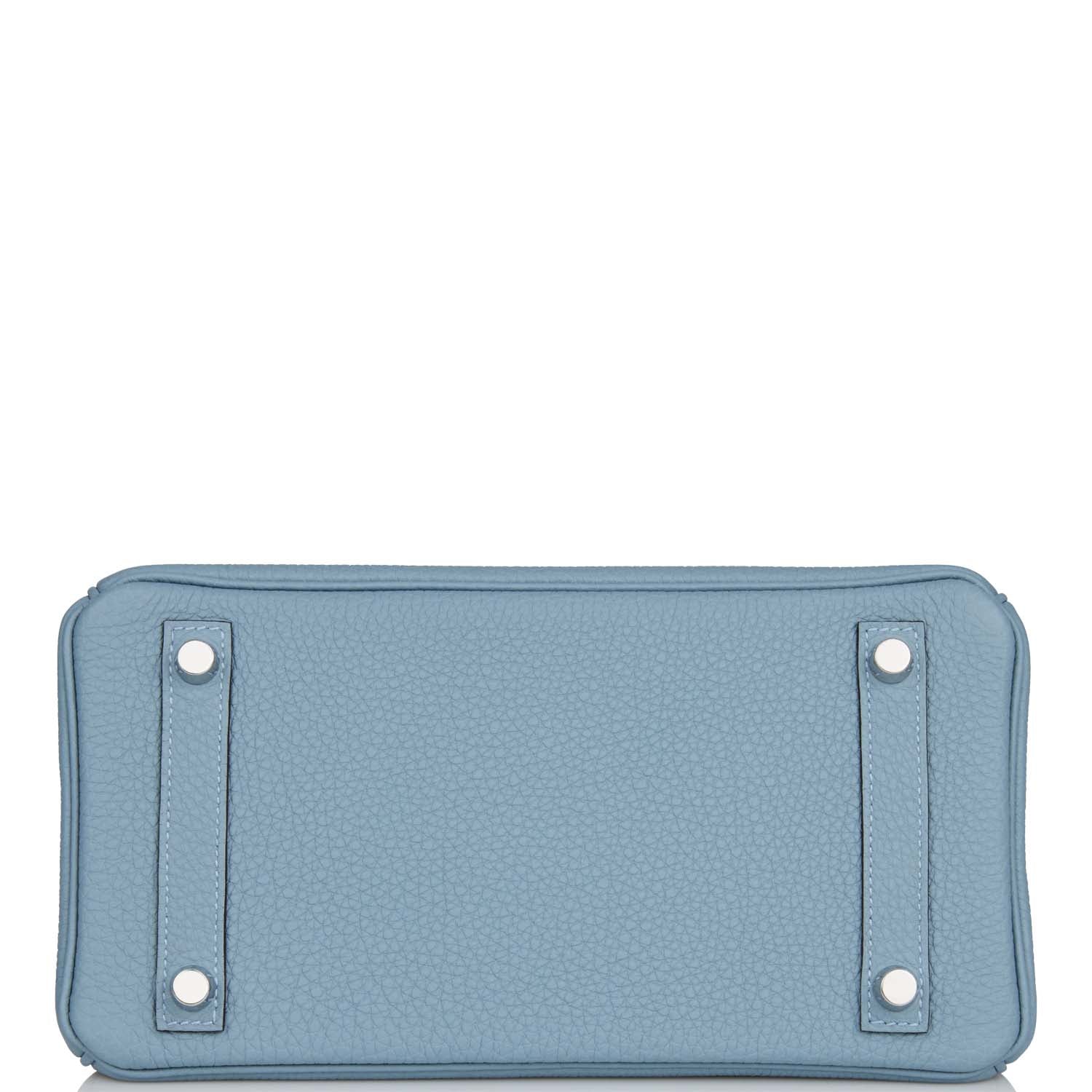This Birkin is in Bleu Lin togo leather with palladium hardware and has tonal stitching, two straps with front toggle closure, clochette with lock and two keys and double rolled handles.