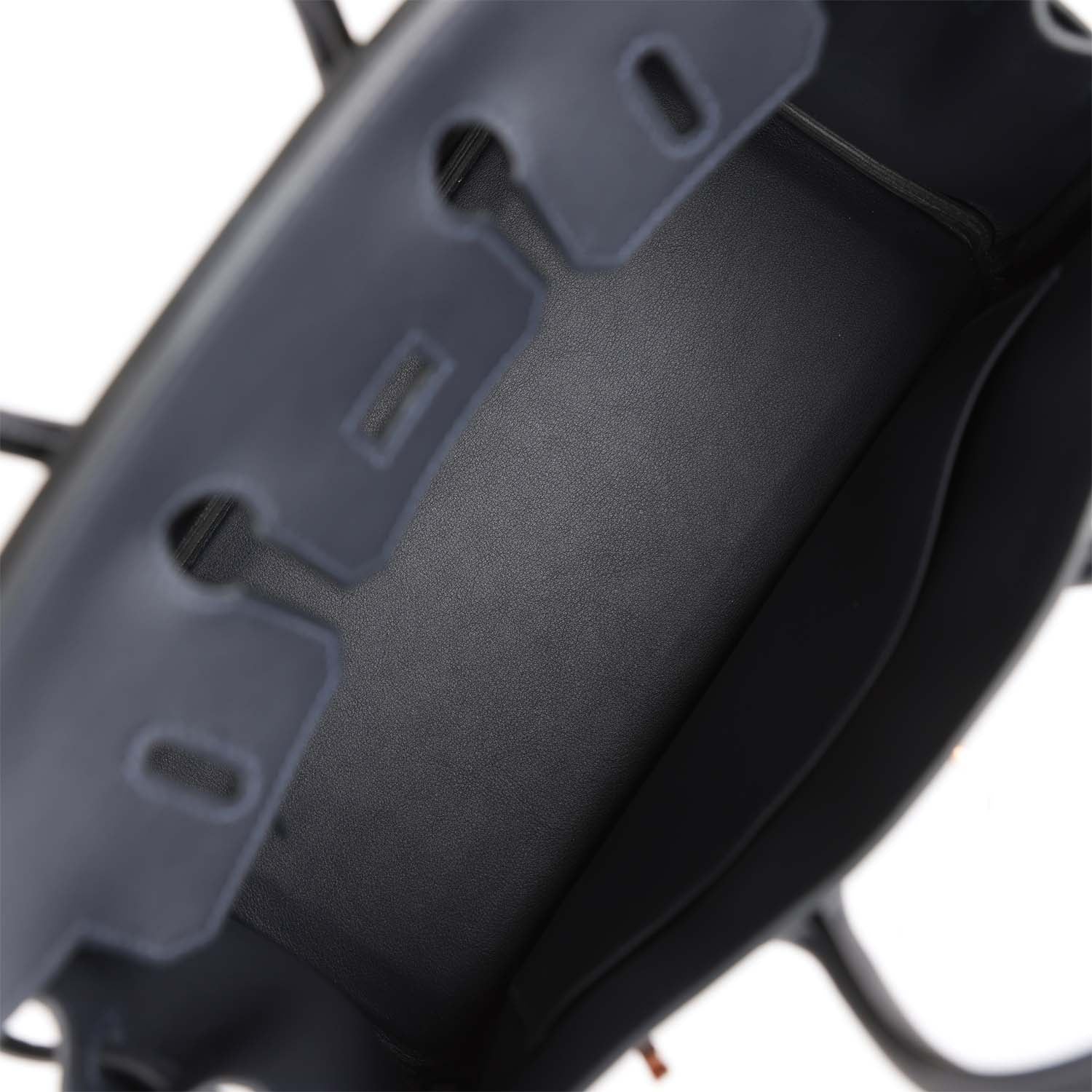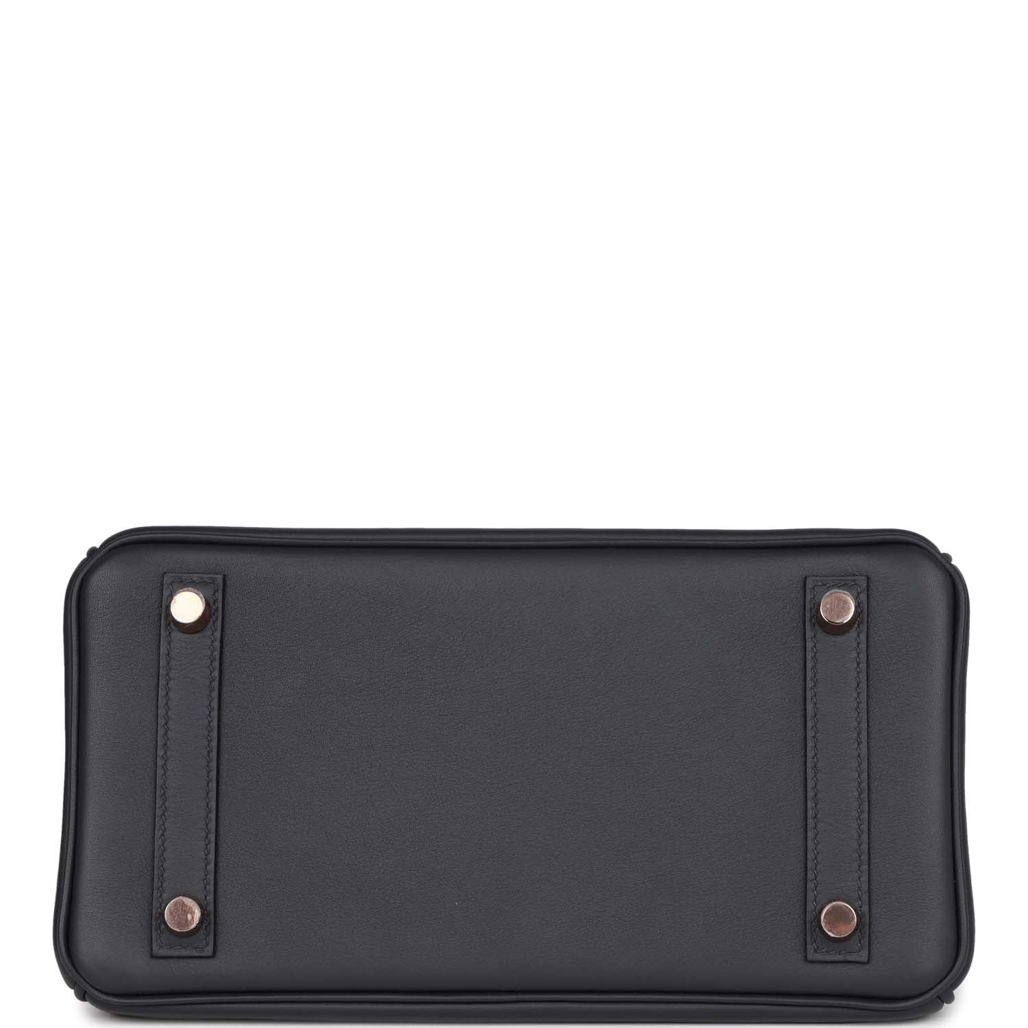 This Birkin is in Caban swift leather with rose gold hardware and has tonal stitching, front flap, two straps with center toggle closure, clochette with lock and two keys, and double rolled handles.