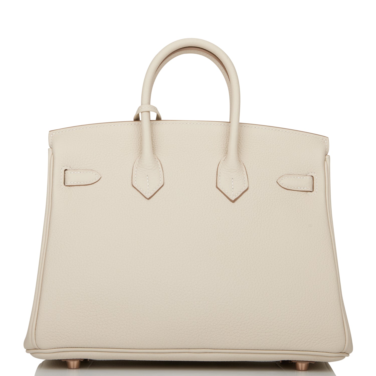 This Birkin is in Craie togo leather with rose gold hardware and has tonal stitching, two straps with front toggle closure, clochette with lock and two keys and double rolled handles.