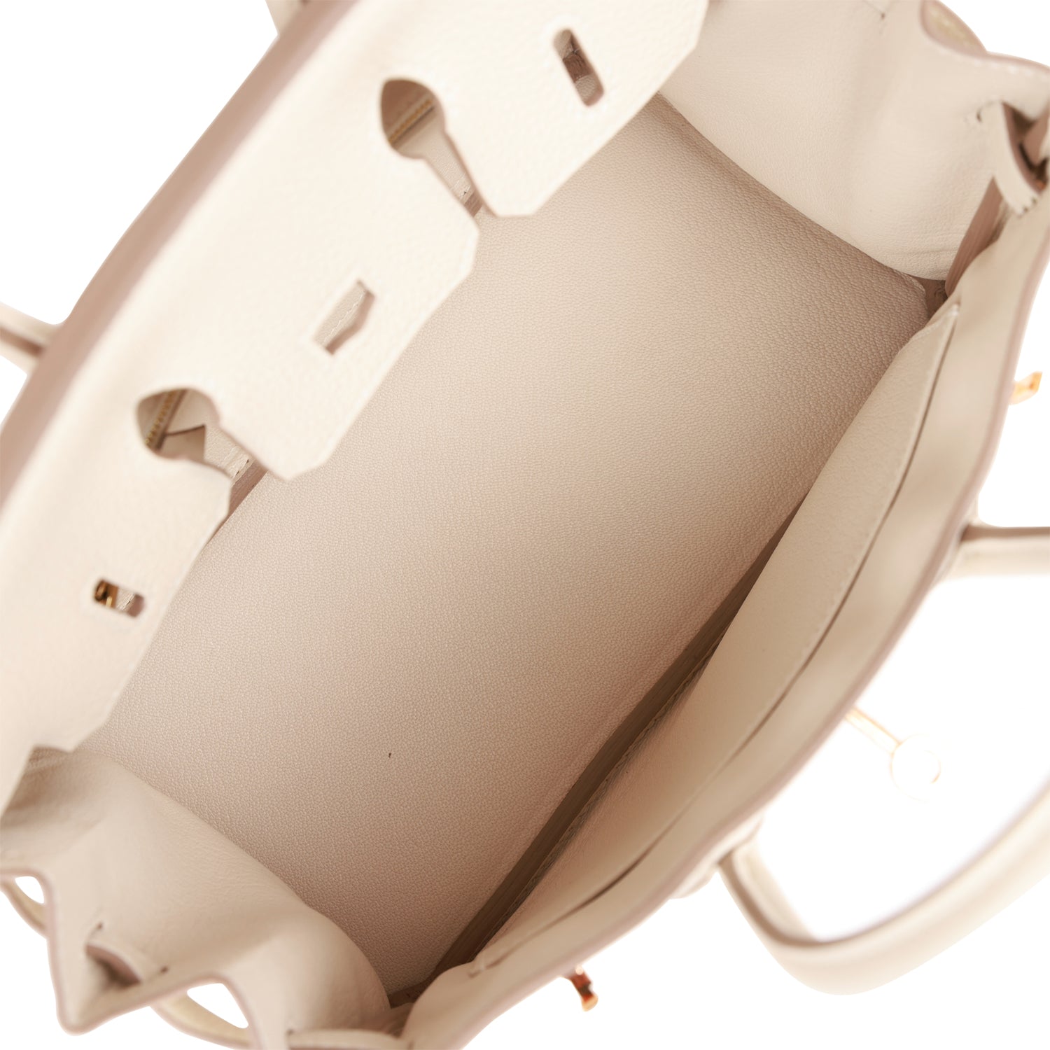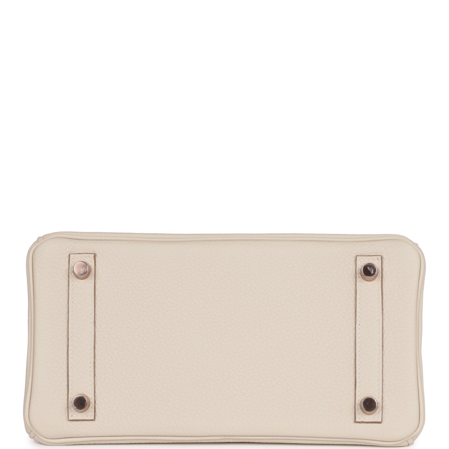 This Birkin is in Craie togo leather with rose gold hardware and has tonal stitching, two straps with front toggle closure, clochette with lock and two keys and double rolled handles.