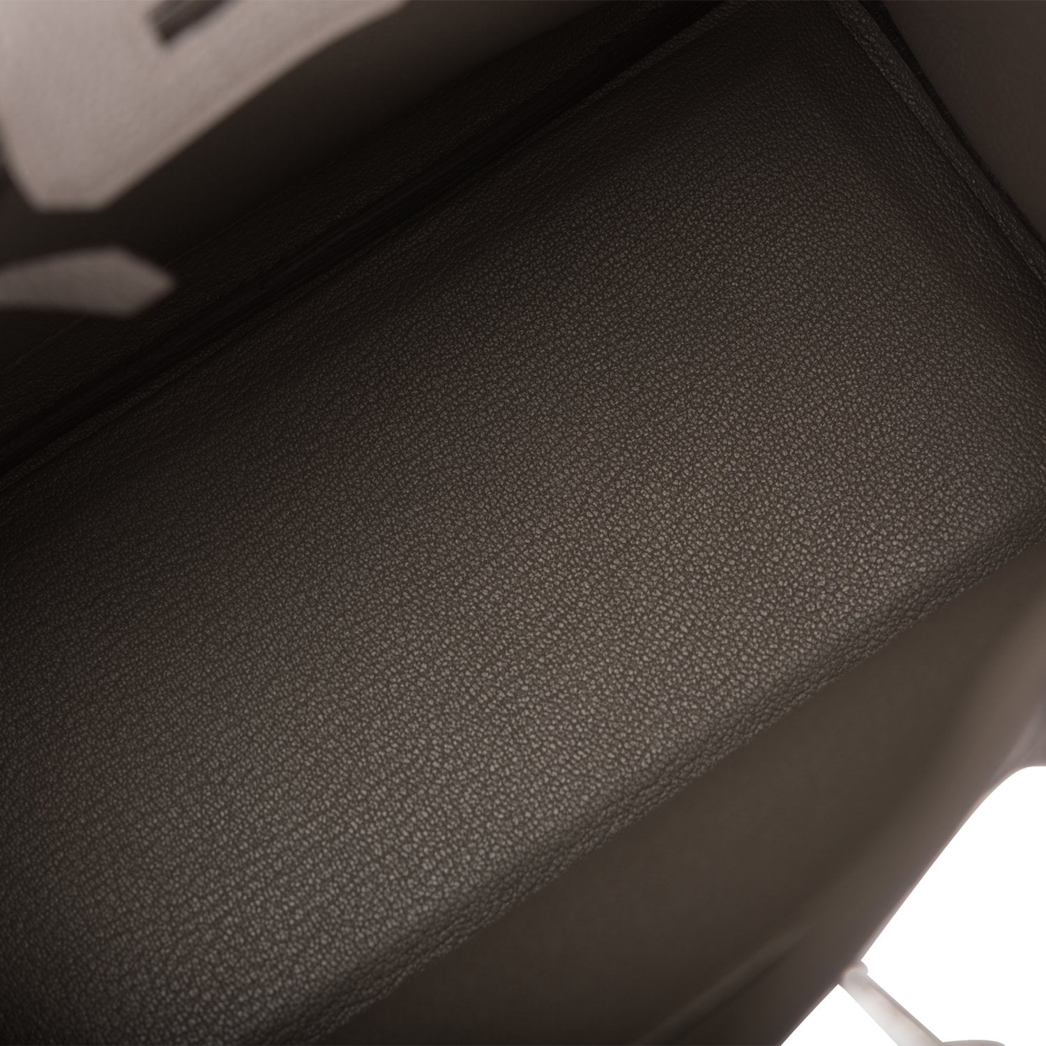 This Birkin is in Etain togo leather with palladium hardware and has tonal stitching, two straps with front toggle closure, clochette with lock and two keys and double rolled handles.