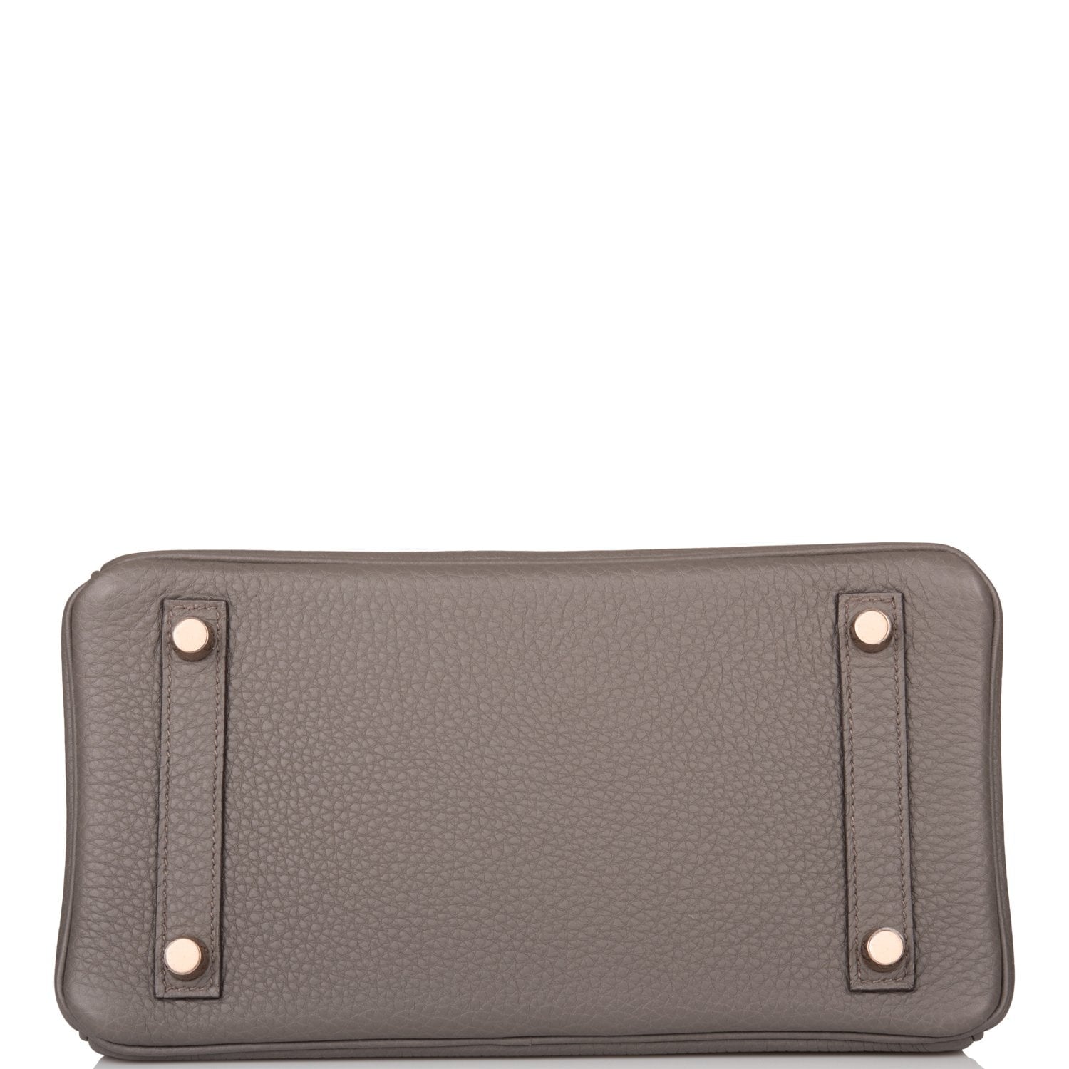 This Birkin is in Etain togo leather with rose gold hardware and has tonal stitching, two straps with front toggle closure, clochette with lock and two keys and double rolled handles.