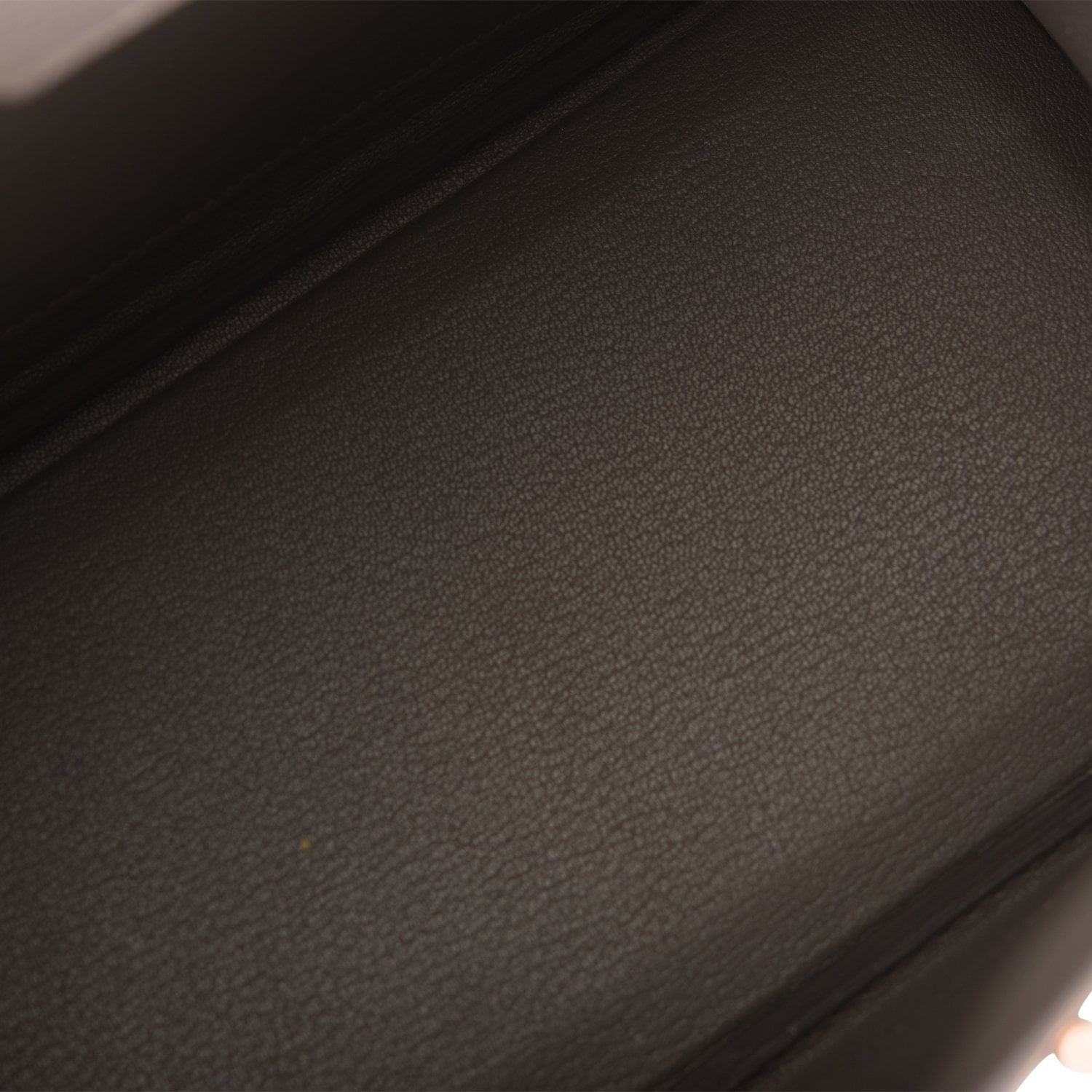 The interior is lined with Etain chevre and has one zip pocket with an Hermes engraved zipper pull and an open pocket on the opposite side.