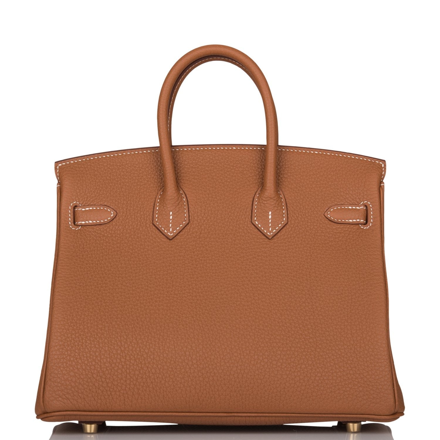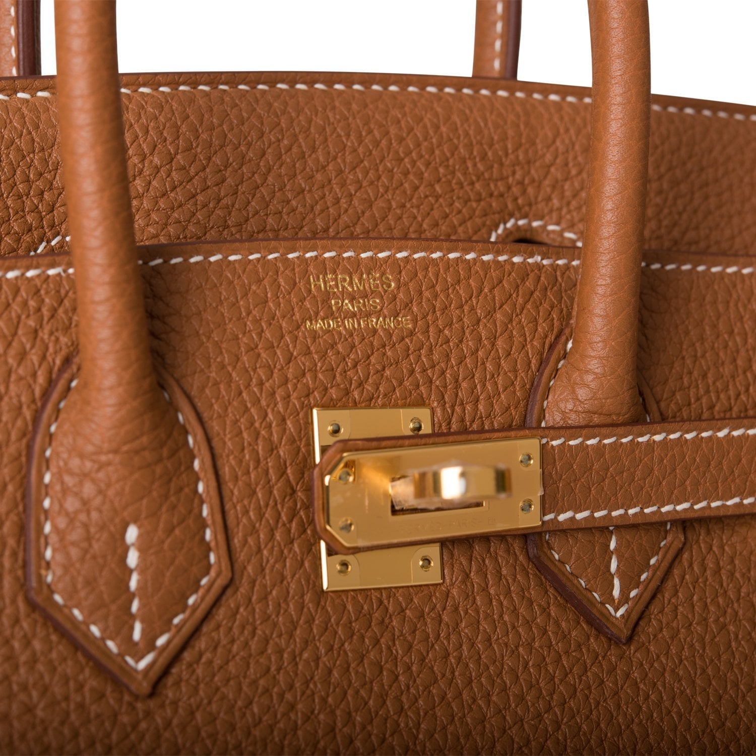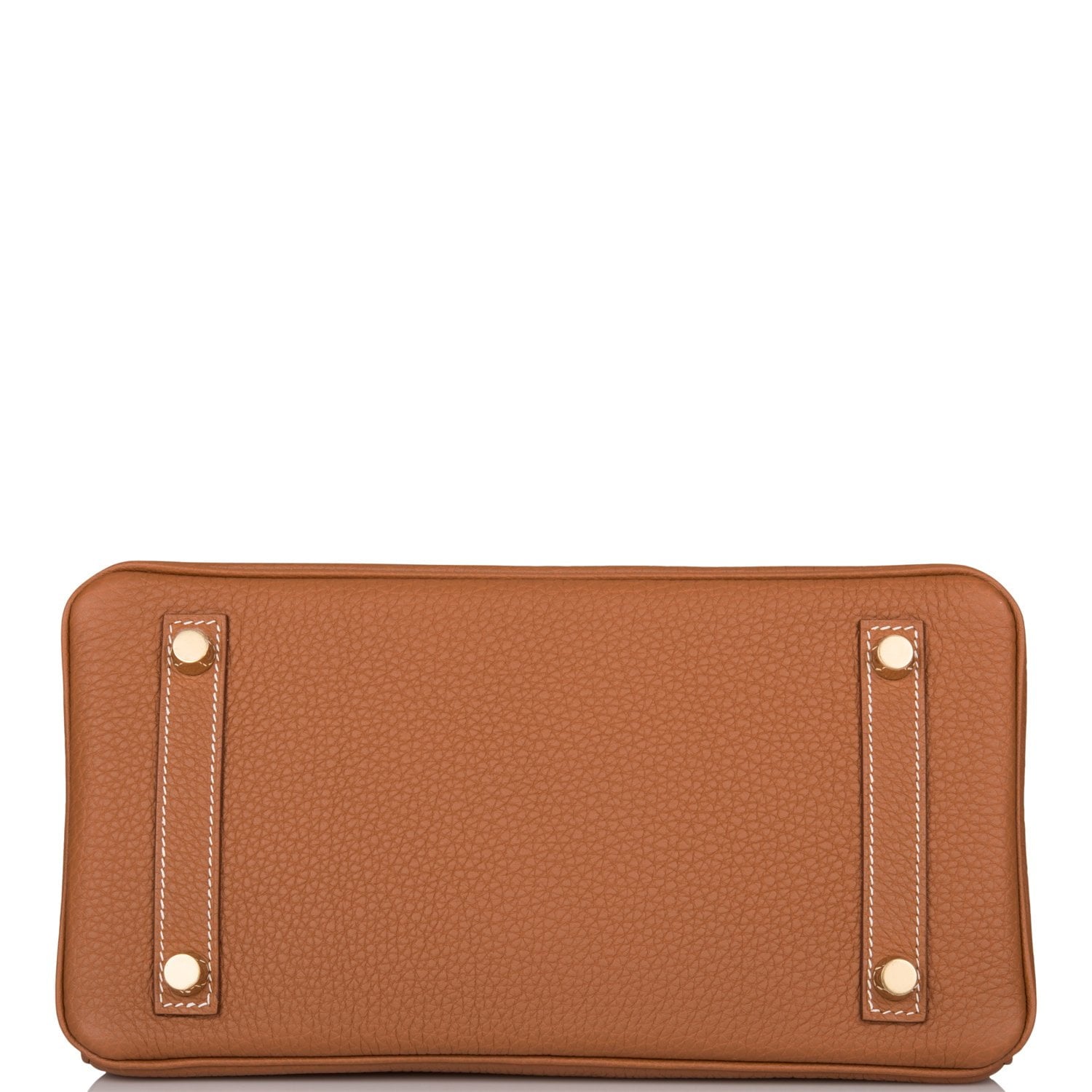 This Birkin is in Gold togo leather with gold hardware and features contrast stitching, front flap, two straps with center toggle closure, a clochette with lock and two keys and double rolled handles.