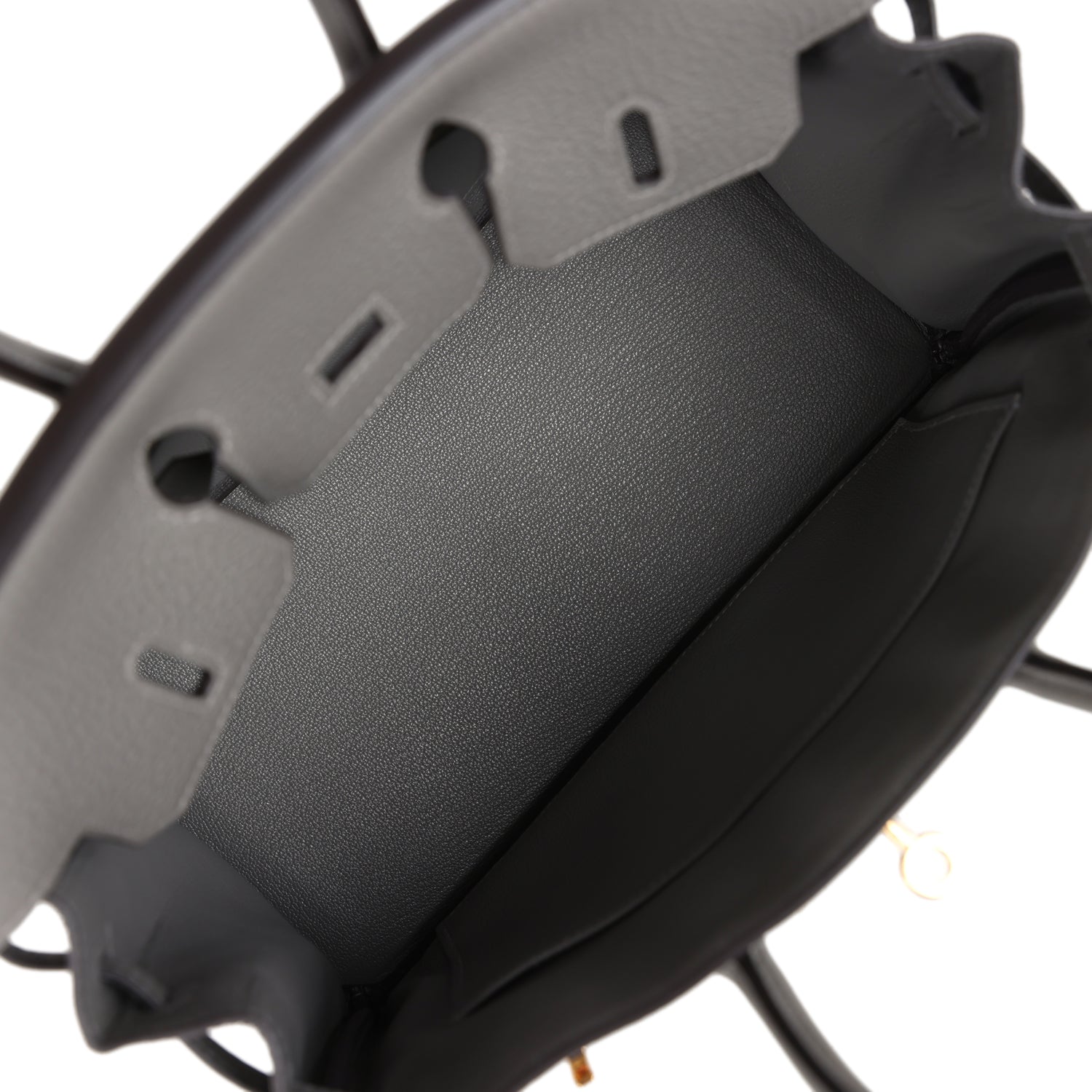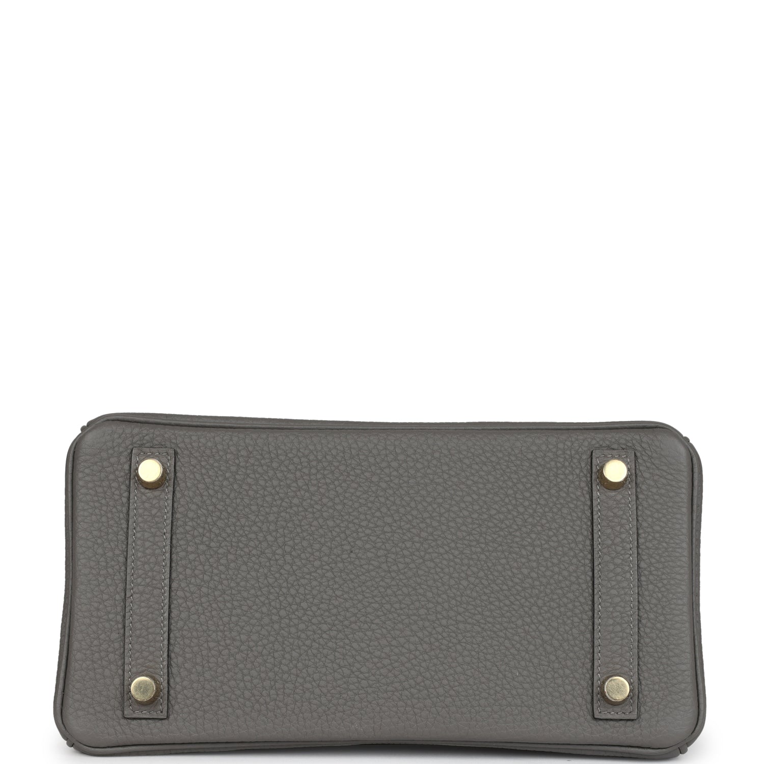 This Birkin is in Gris Meyer togo leather with gold hardware and has tonal stitching, front flap, two straps with center toggle closure, clochette with lock and two keys and double rolled handles.
