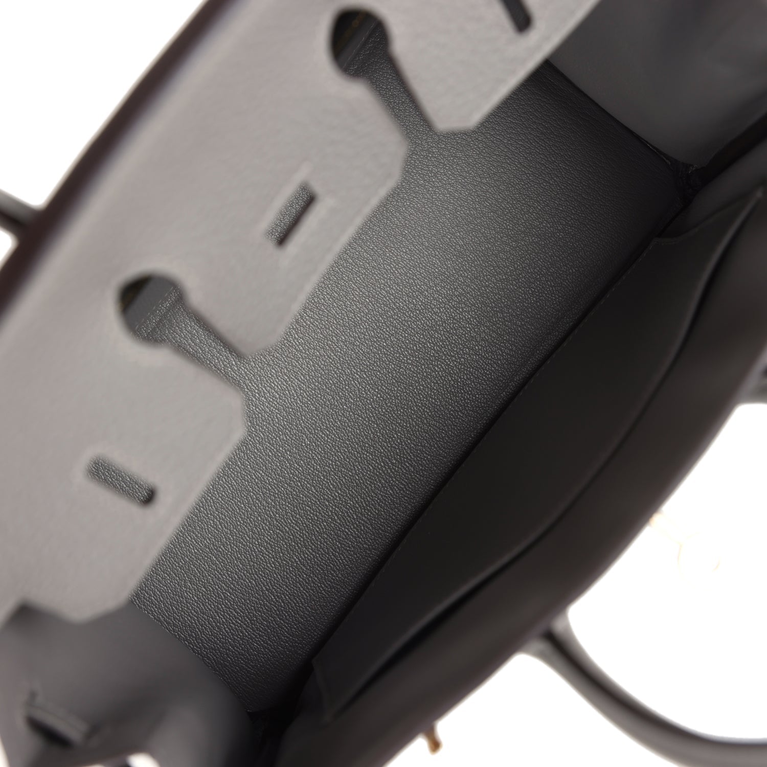 The interior is lined with Gris Meyer chevre and has one zip pocket with an Hermès engraved zipper pull and an open pocket on the opposite side.