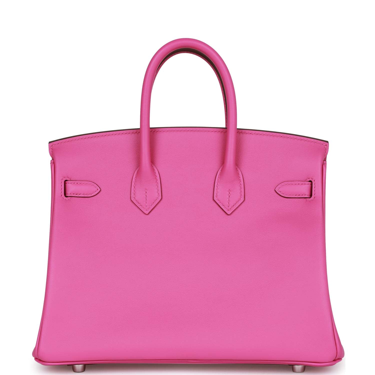 This Birkin 25 is in Magnolia swift leather with palladium hardware and has tonal stitching, two straps with front toggle closure, clochette with lock and two keys and double rolled handles.