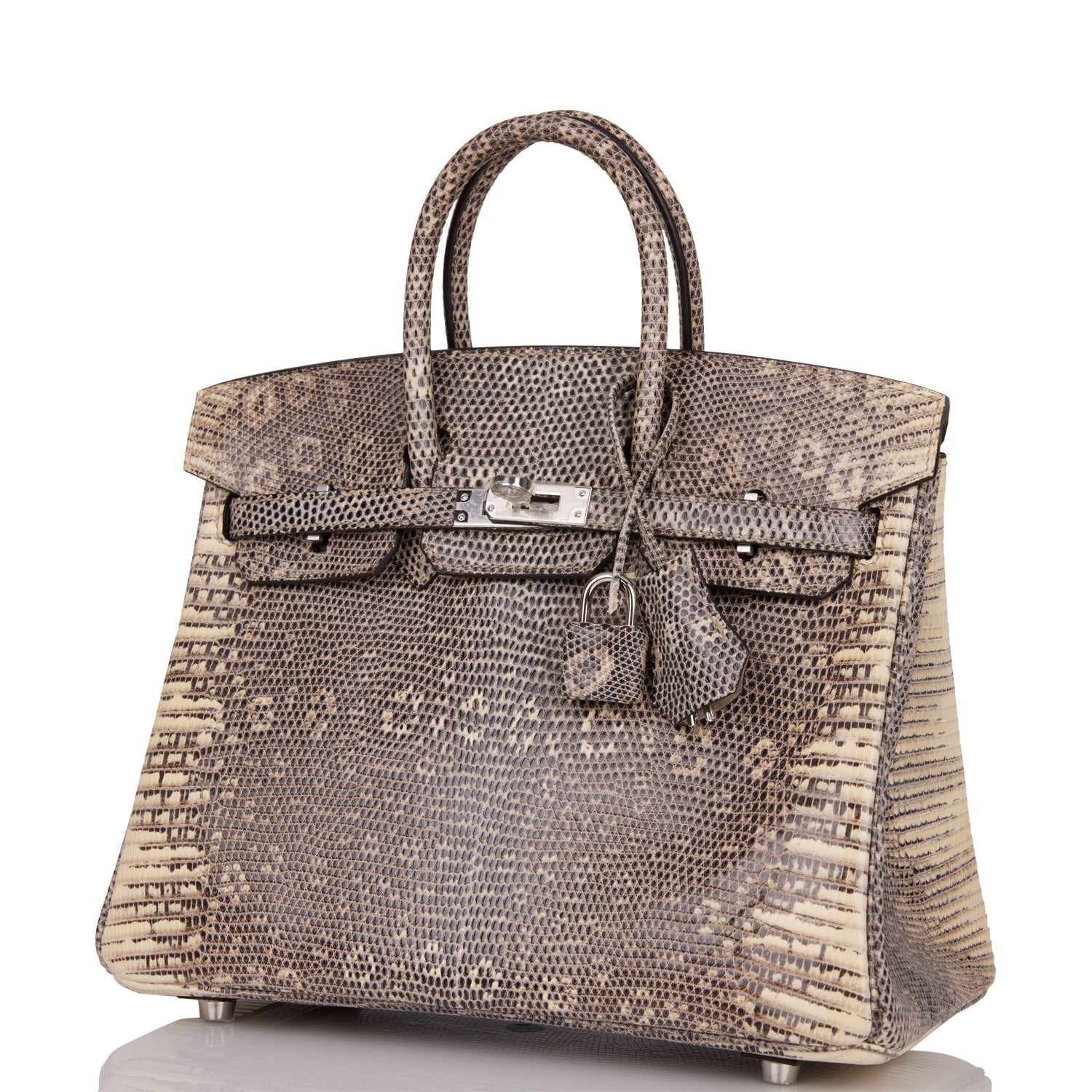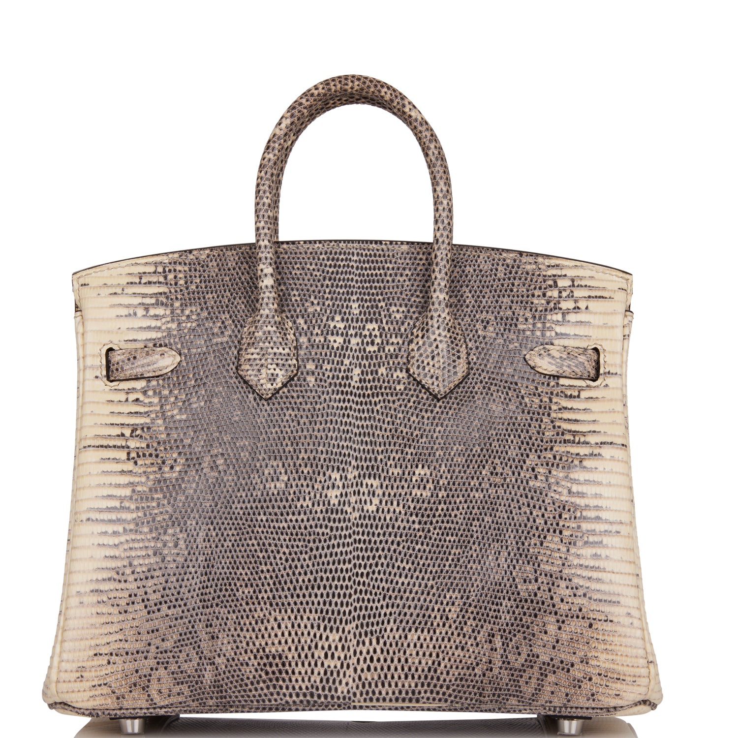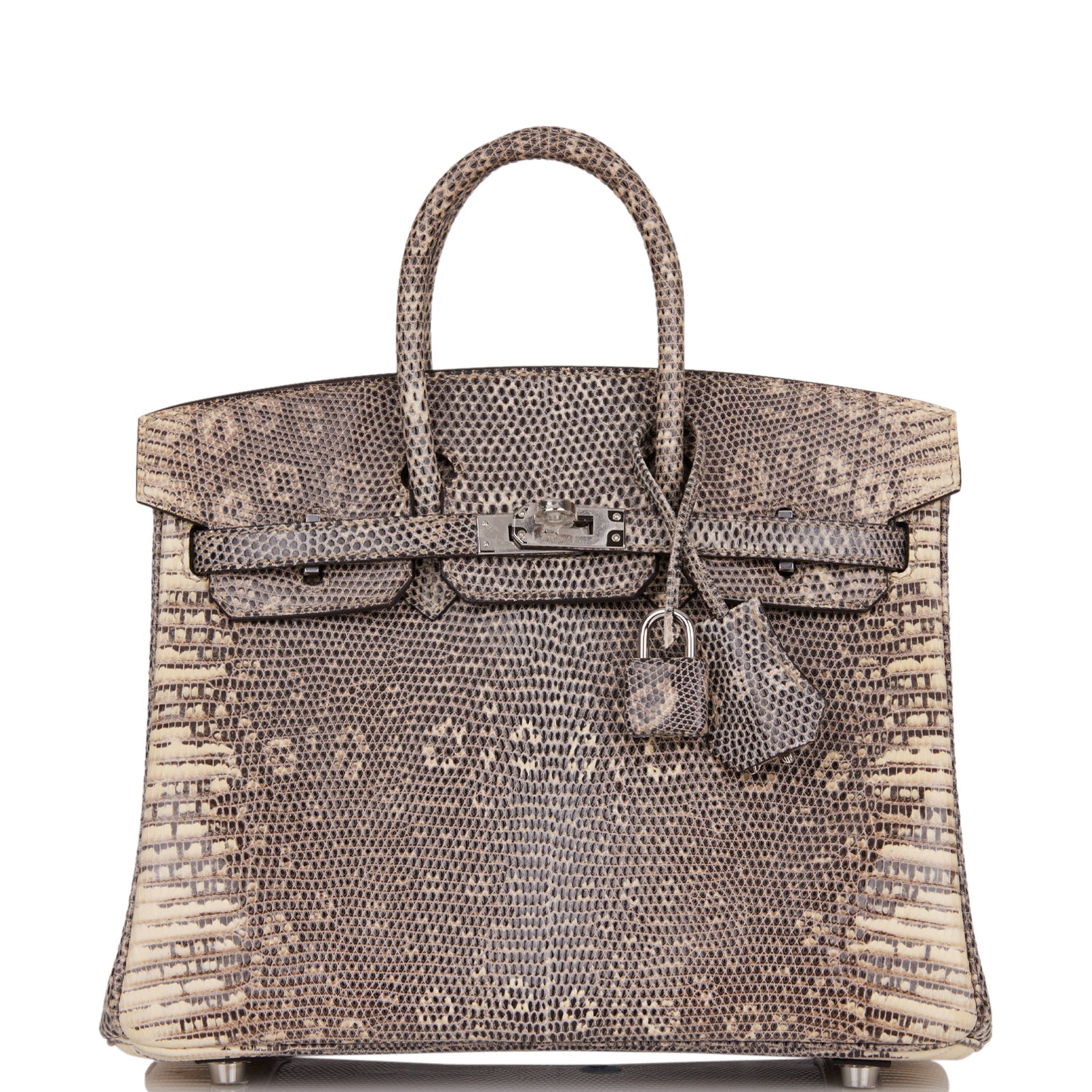 This Birkin is in Ombre shiny Salvator lizard with palladium hardware and has tonal stitching, front strap, two straps with center toggle closure, clochette with lock and two keys and double rolled handles.