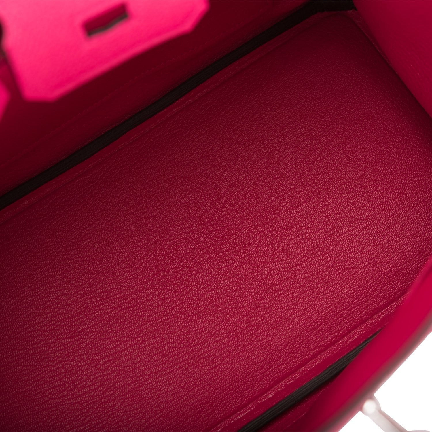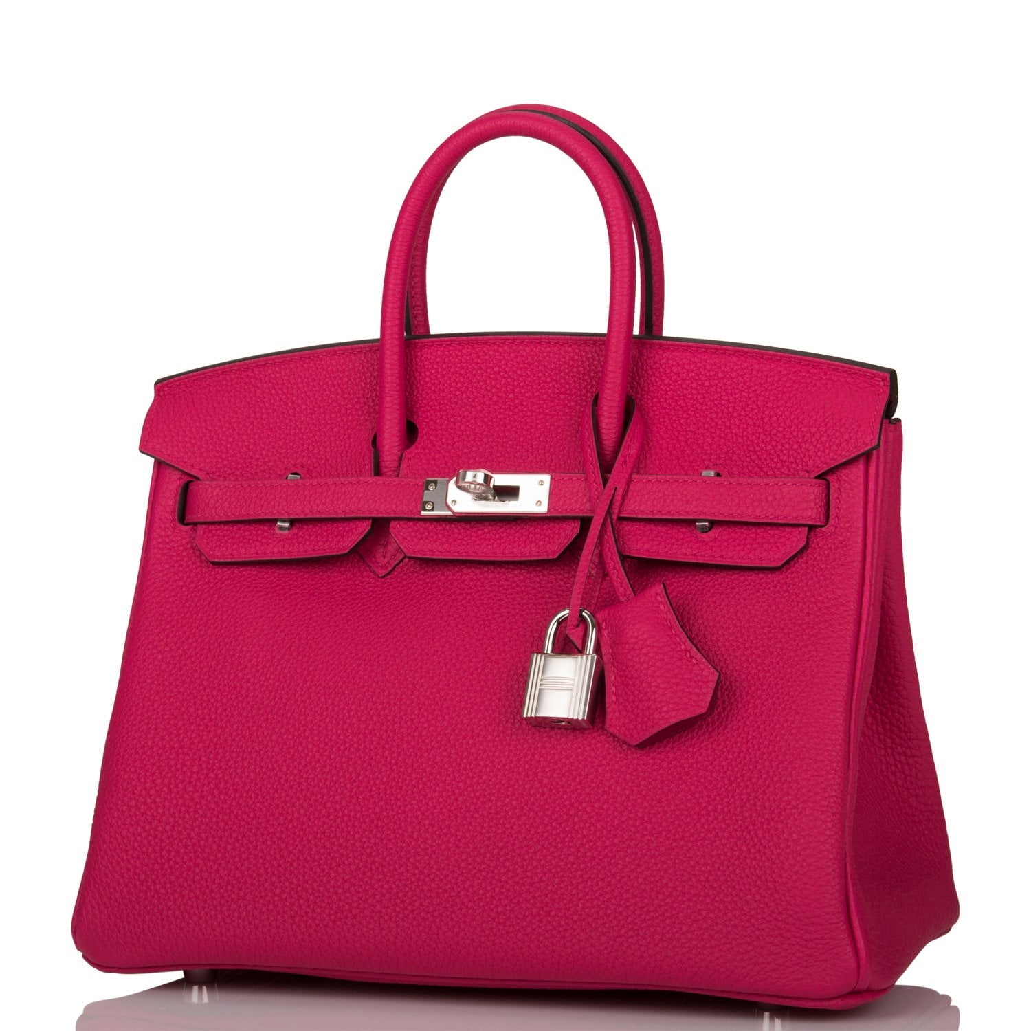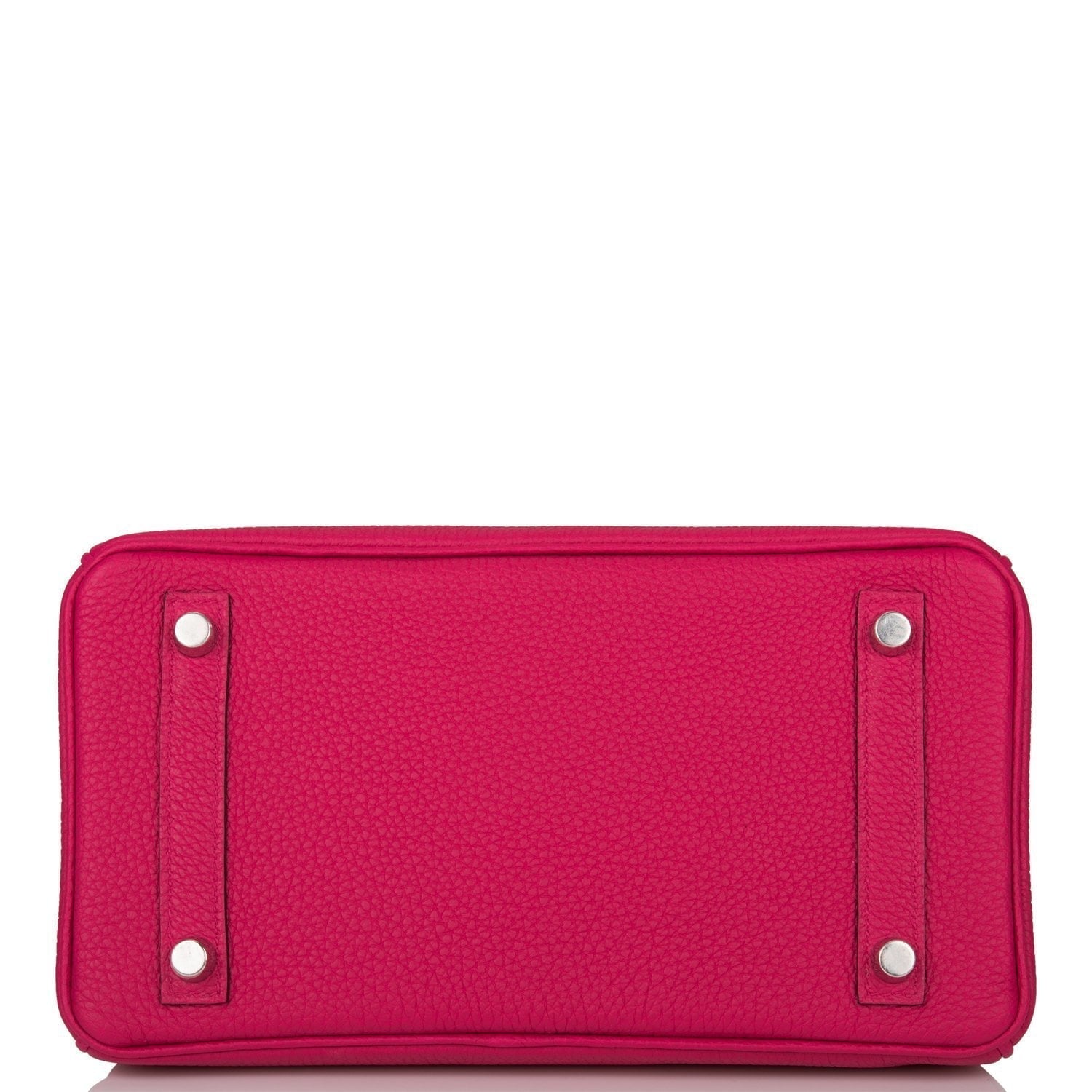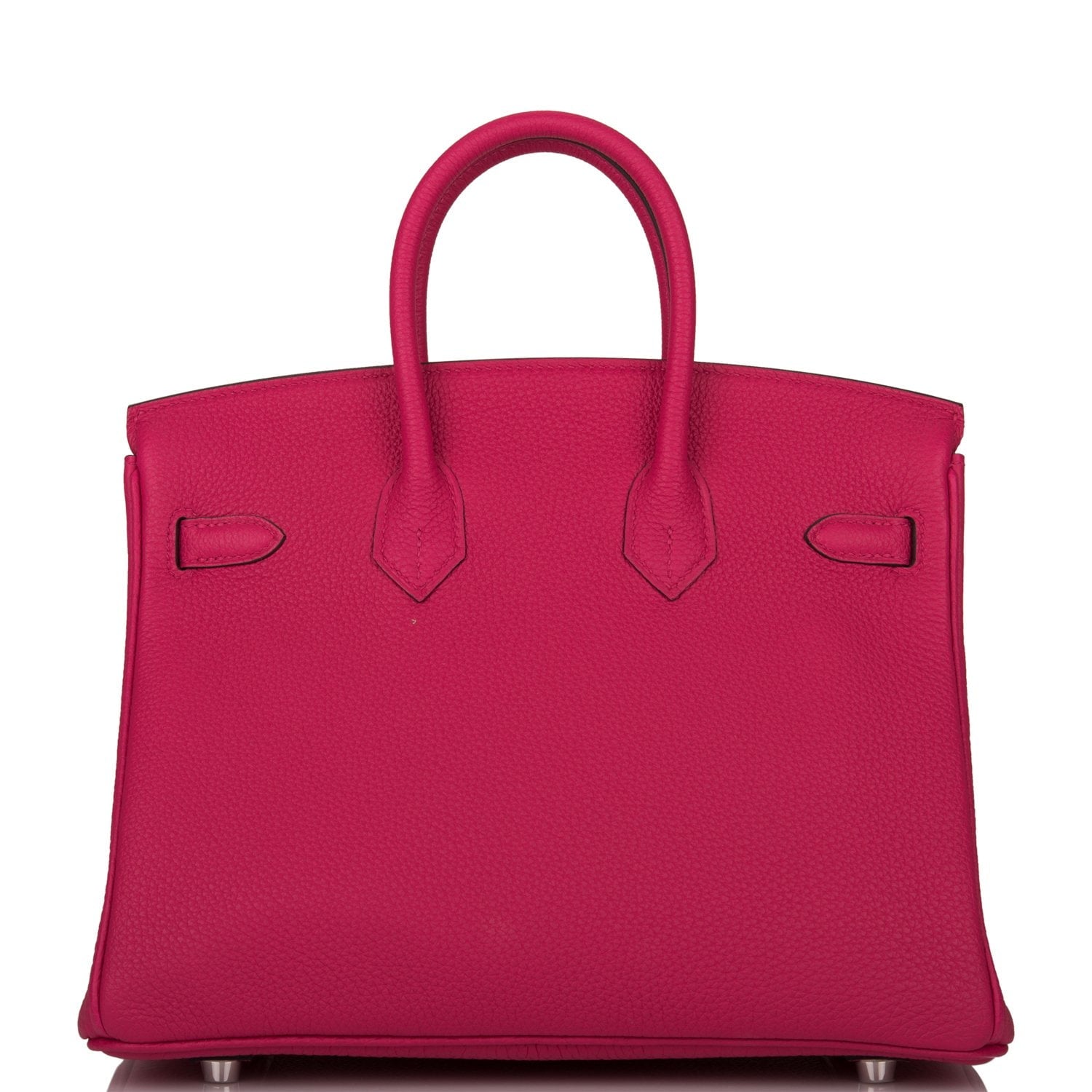 This Birkin is in Rose Mexico togo leather with palladium hardware and has tonal stitching, front flap, two straps with center toggle closure, clochette with lock and two keys, and double rolled handles.