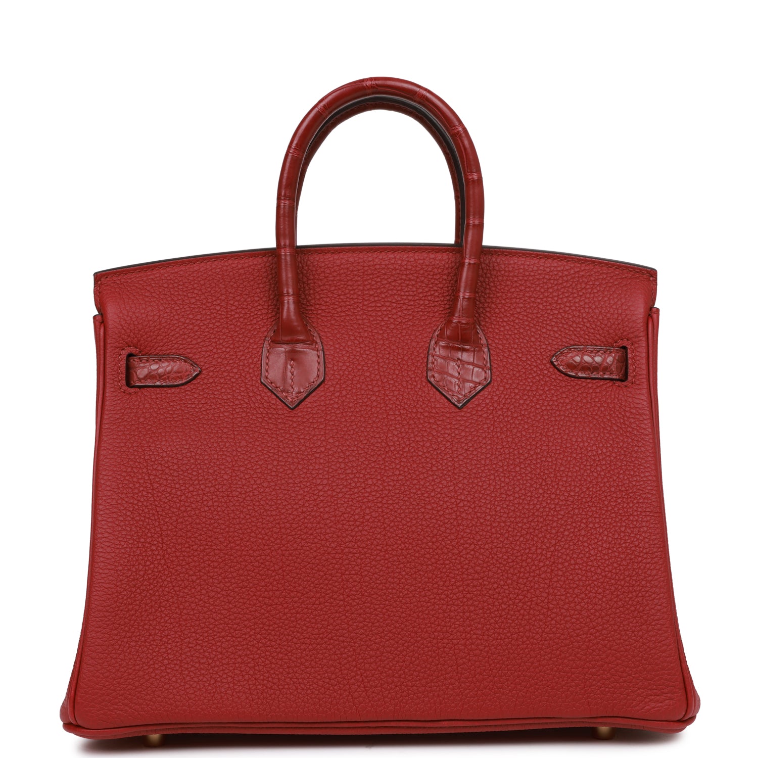 This Birkin is in Rouge Grenat matte Mississippienis alligator and togo leather with gold hardware and has tonal stitching, front strap, two straps with center toggle closure, clochette with lock and two keys and double rolled handles.