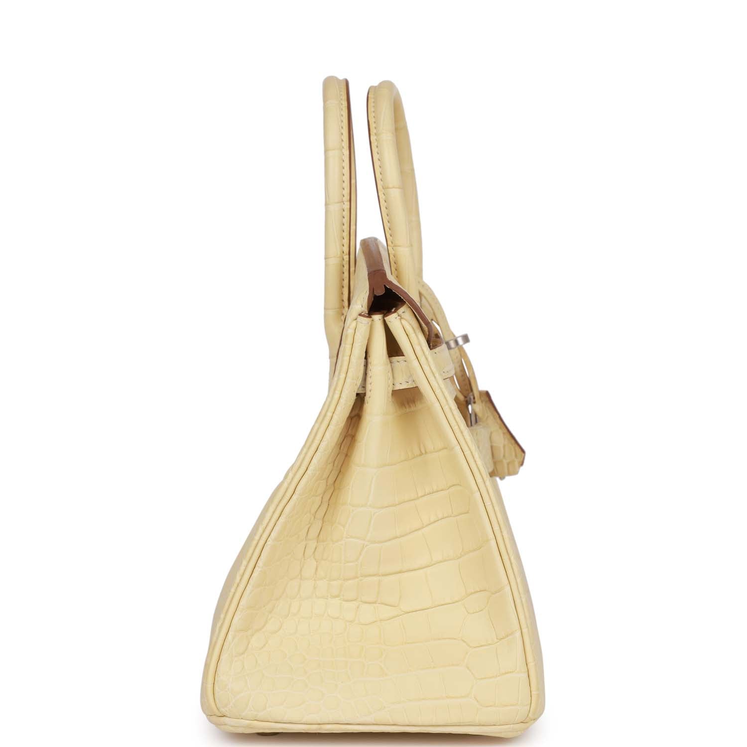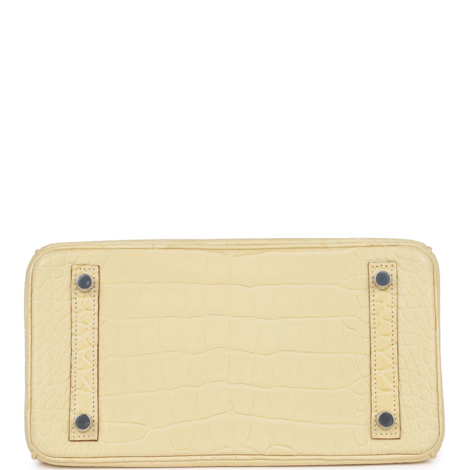 This Hermes Kelly 25, is in Vanille (Vanilla) matte Mississippiensis alligator with palladium hardware and has tonal stitching, front flap, two straps with center toggle closure, clochette with lock and two keys, single rolled handle and removable strap.