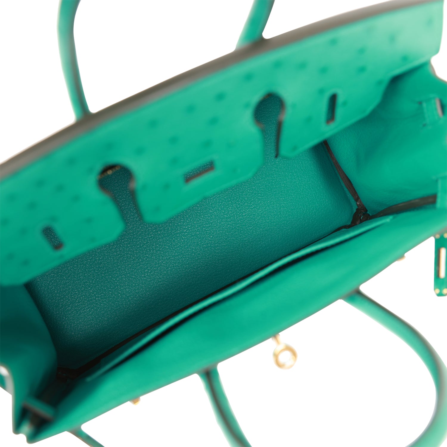 The interior is lined with Vert Verone chevre and has a zip pocket with an Hermes engraved zipper pull and an open pocket on the opposite side.