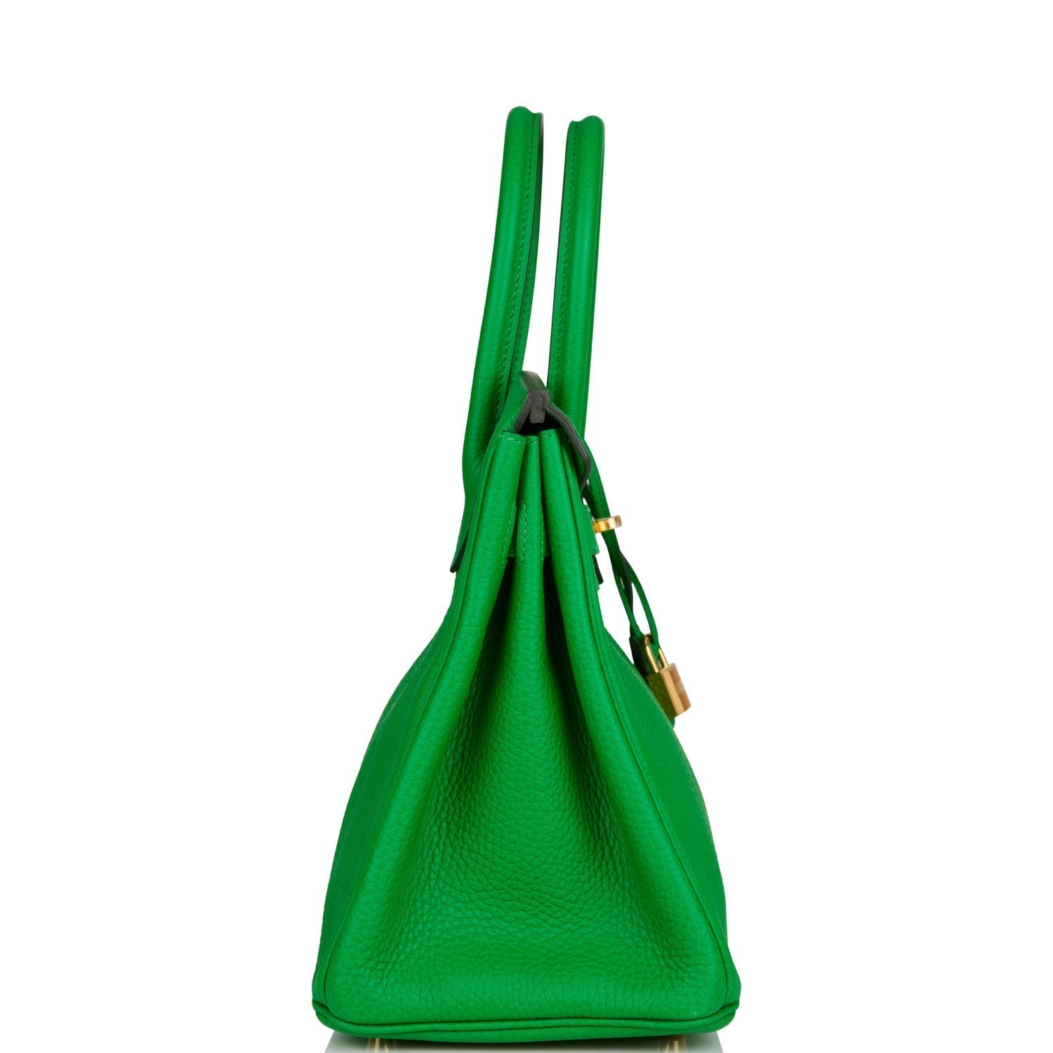 This Birkin is in Bambou clemence leather with gold hardware and has tonal stitching, front flap, two straps with center toggle closure, clochette with lock and two keys, and double rolled handles.