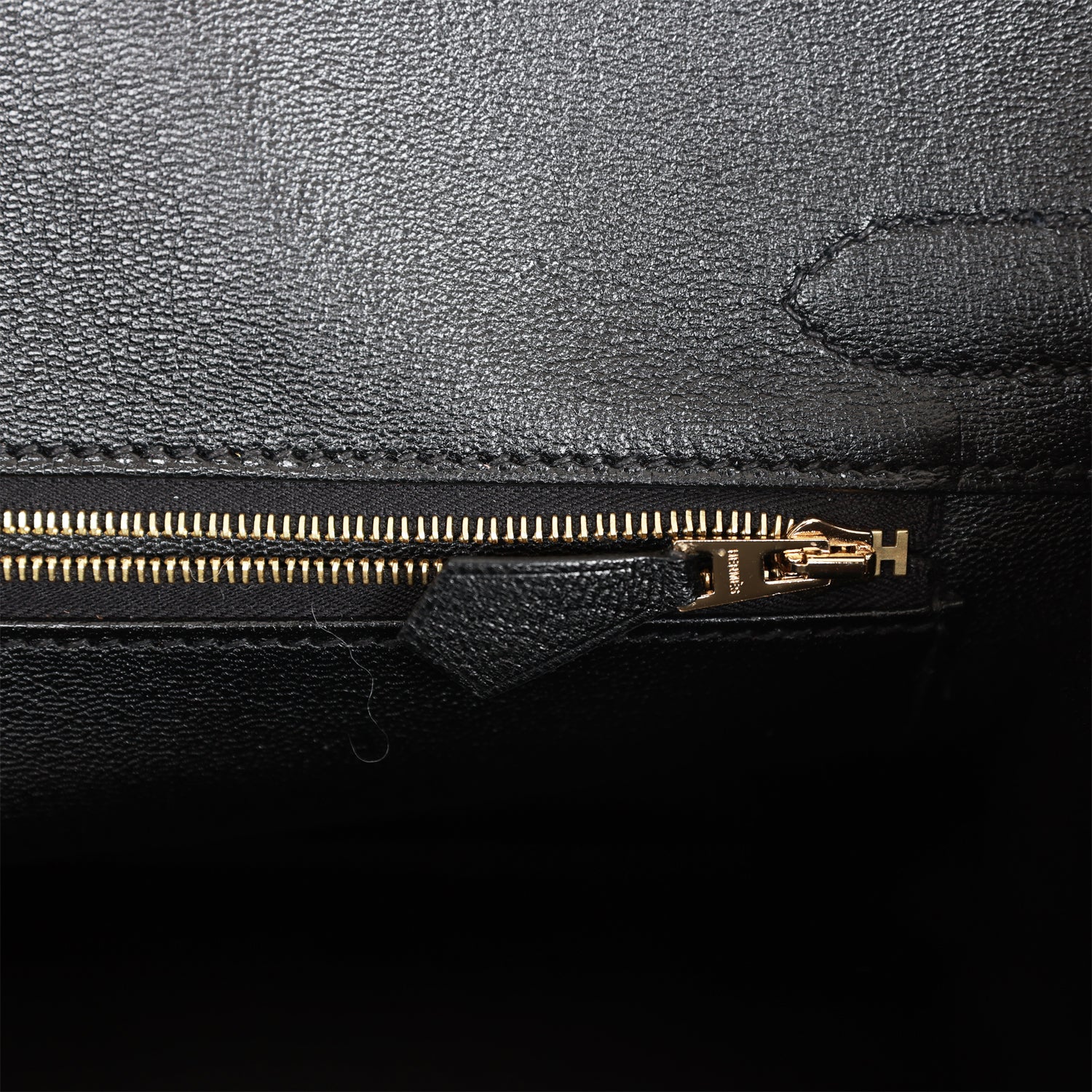 The interior is lined with black chevre and has one zip pocket with an Hermes engraved zipper pull and an open pocket on the opposite side.