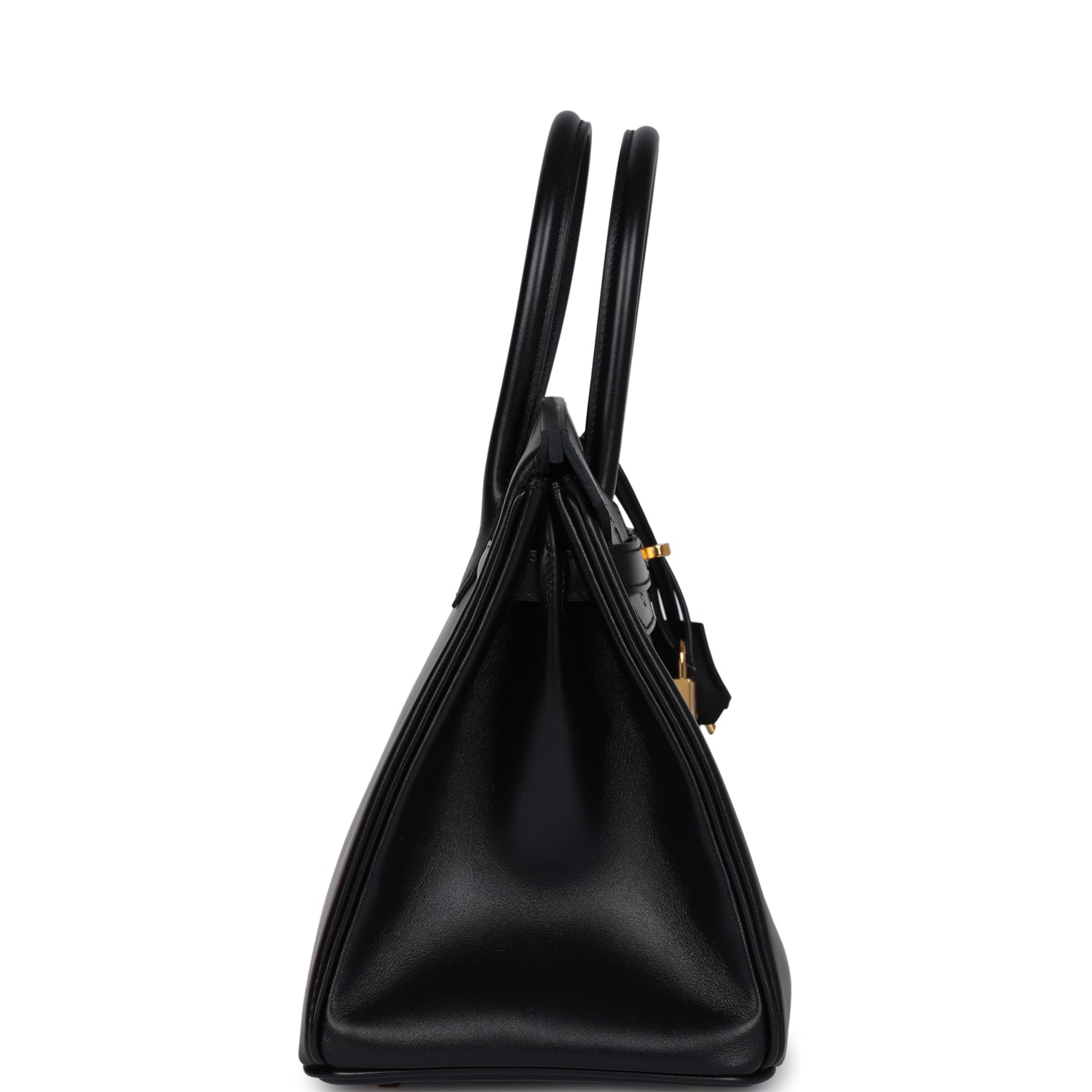This Birkin is in Black Tadelakt leather with gold hardware and has tonal stitching, front flap, two straps with center toggle closure, clochette with lock and two keys, and double rolled handles.