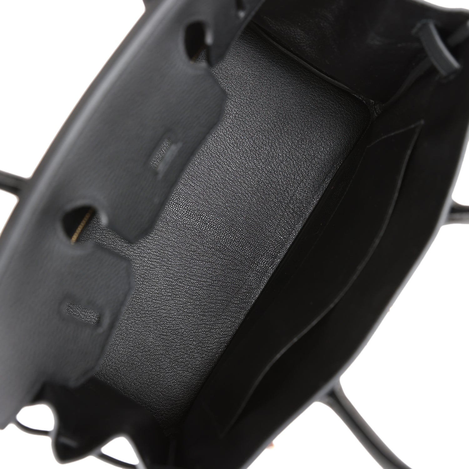 The interior is lined with black chevre and has one zip pocket with an Hermes engraved zipper pull and an open pocket on the opposite side.