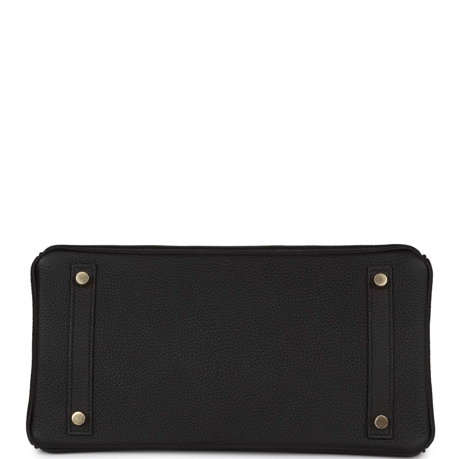 This Birkin is in Black togo leather with gold hardware and has tonal stitching, front flap, two straps with center toggle closure, clochette with lock and two keys, and double rolled handles.