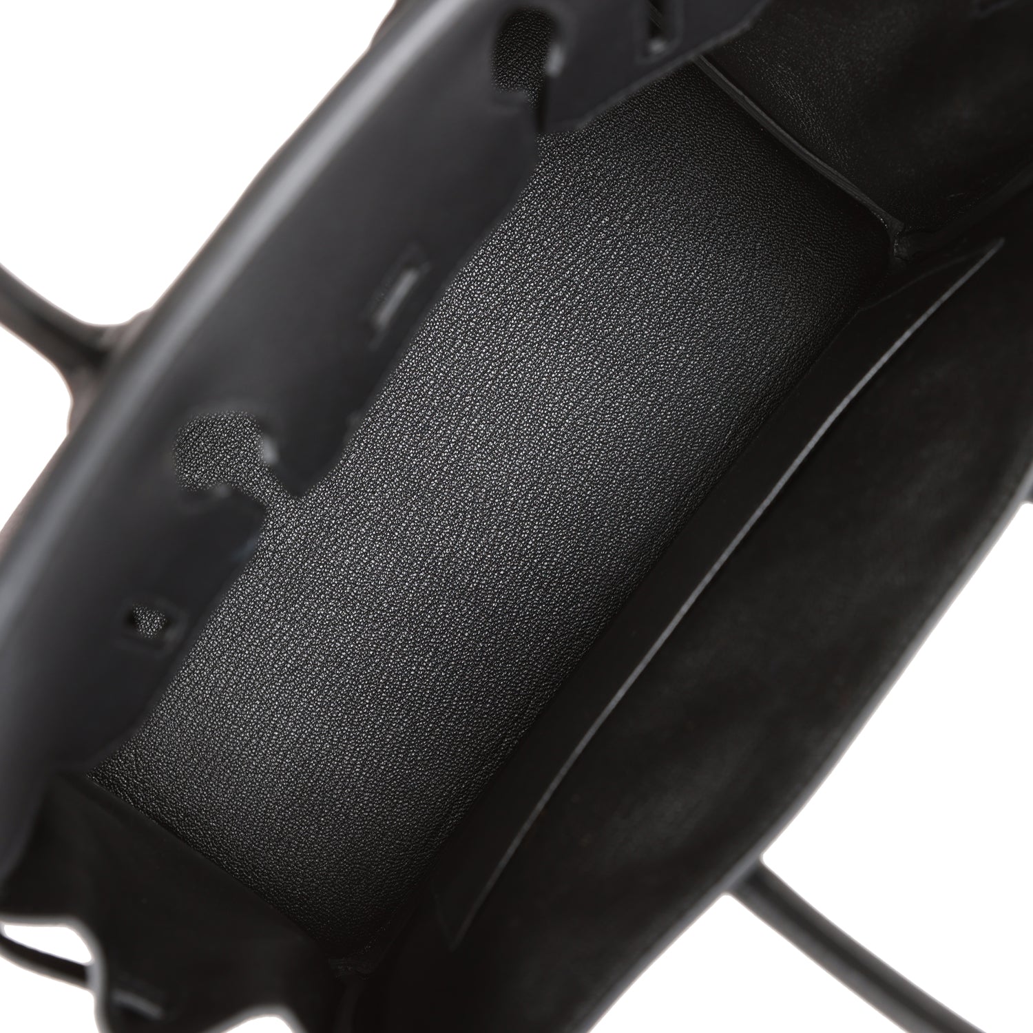 The interior is lined with black chevre and has one zip pocket with an Hermes engraved zipper pull and an open pocket on the opposite side.
