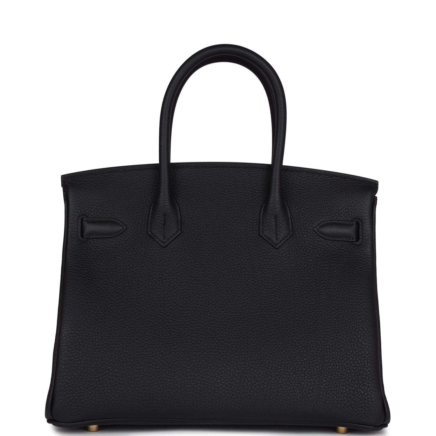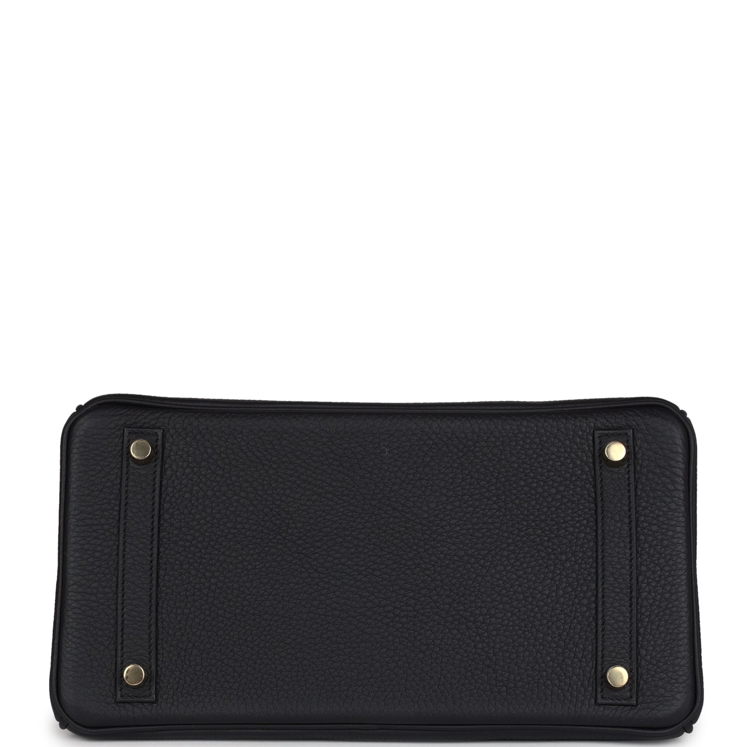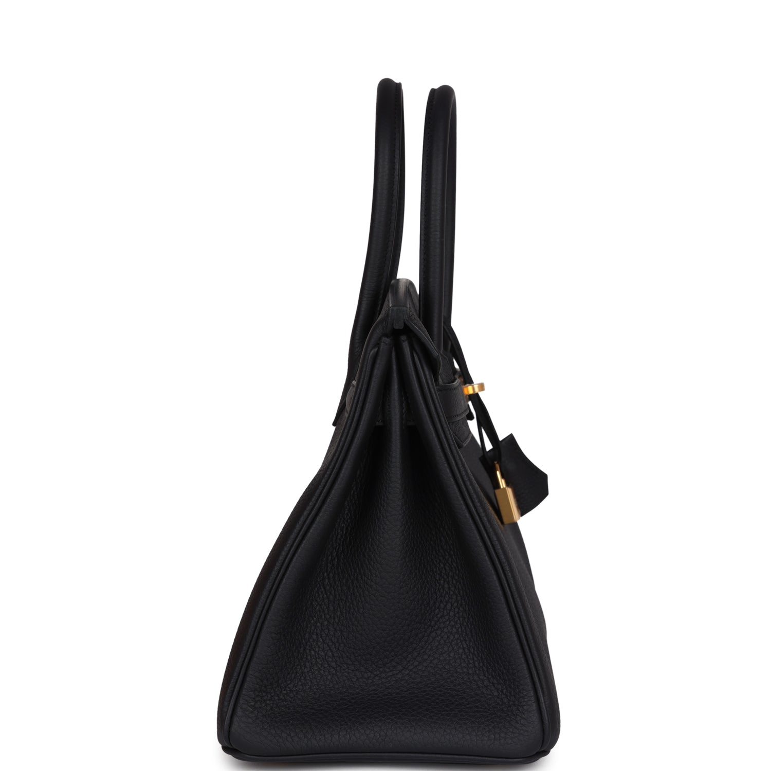 This Birkin is in Black togo leather with gold hardware and has tonal stitching, front flap, two straps with center toggle closure, clochette with lock and two keys, and double rolled handles.