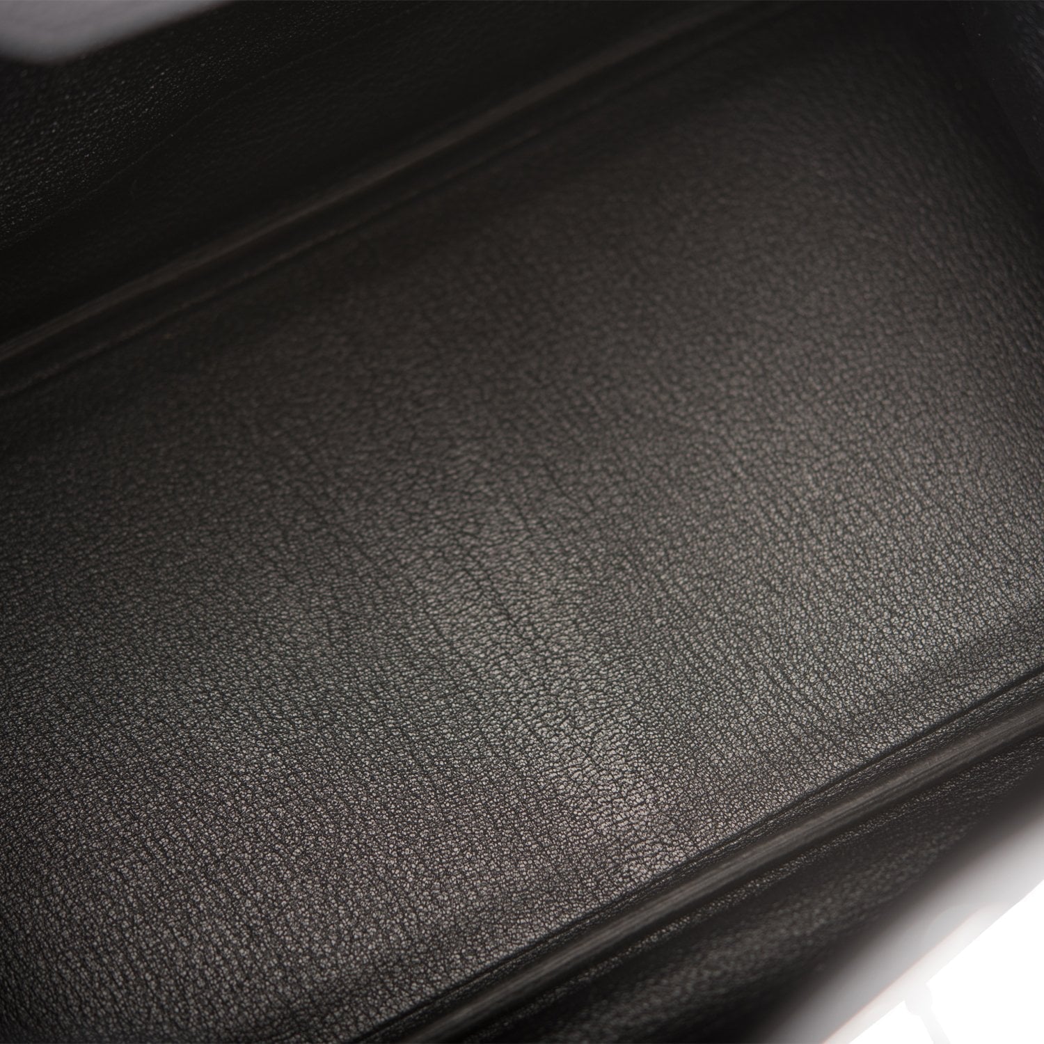 The interior is lined with black chevre and has one zip pocket with an Hermes engraved zipper pull and an open pocket on the opposite side.
