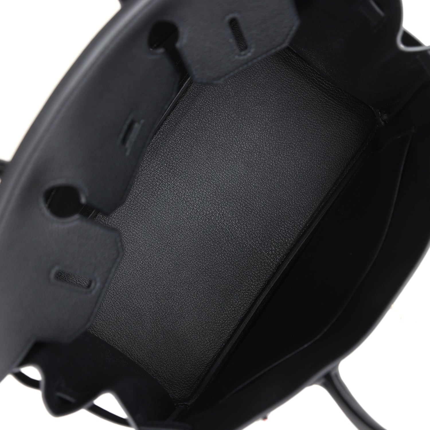 The interior is lined with Black chevre and has one zip pocket with an Hermes engraved zipper pull and an open pocket on the opposite side.