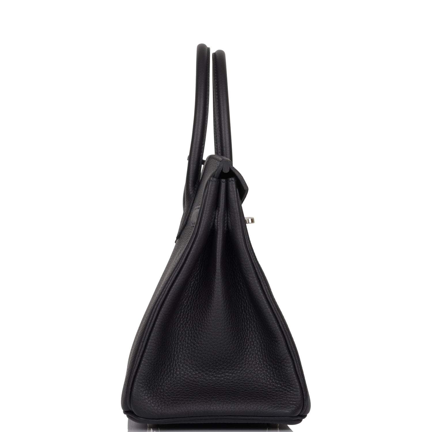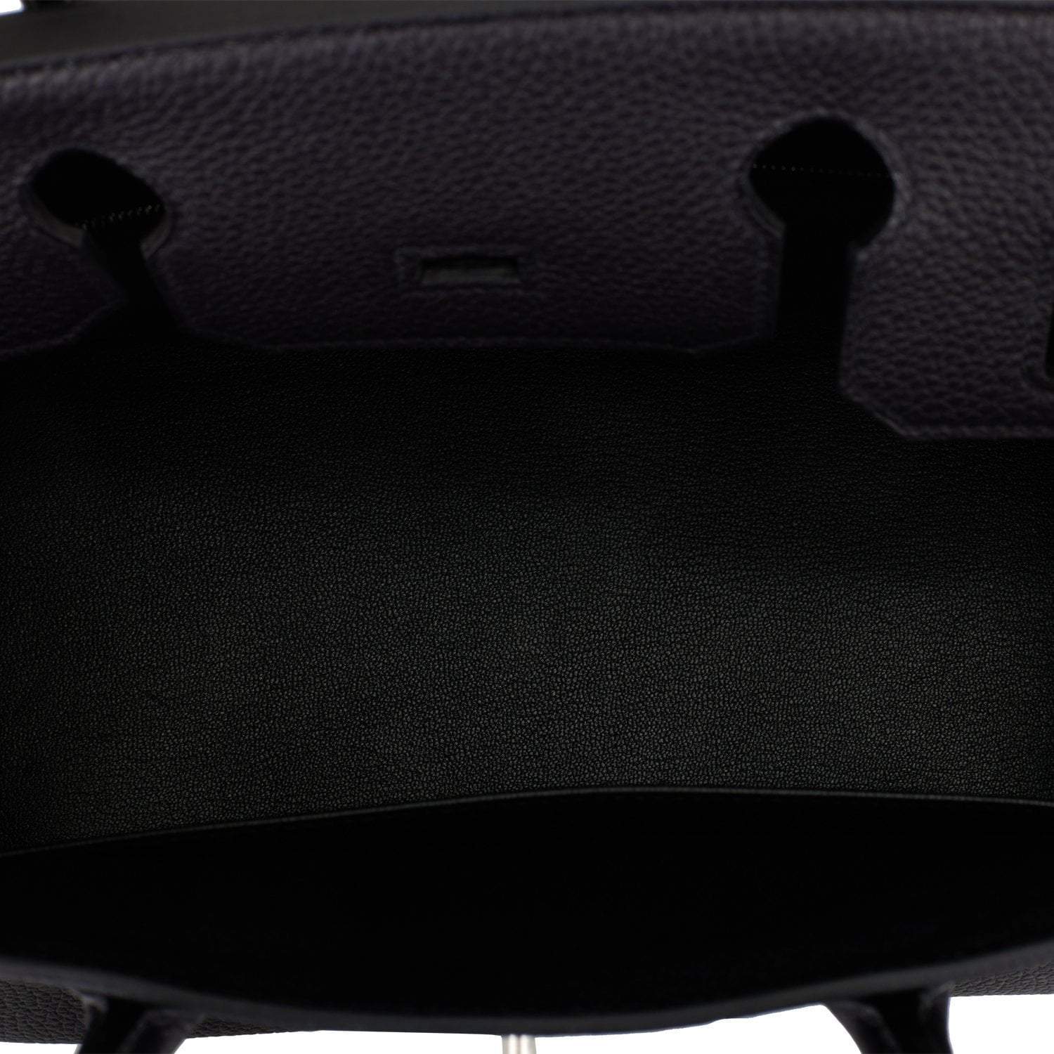 This Birkin is in Black togo leather with palladium hardware and has tonal stitching, front flap, two straps with center toggle closure, clochette with lock and two keys, and double rolled handles.