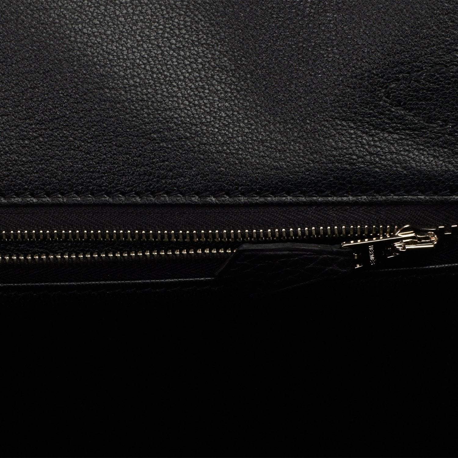 The interior is lined with black chevre and has one zip pocket with an Hermes engraved zipper pull and an open pocket on the opposite side.