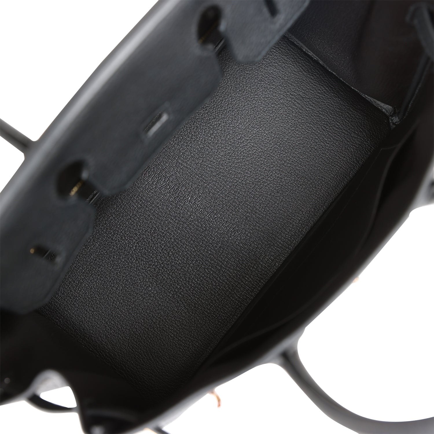 The interior is lined with black chevre and has one zip pocket with an Hermes engraved zipper pull and an open pocket on the opposite side.