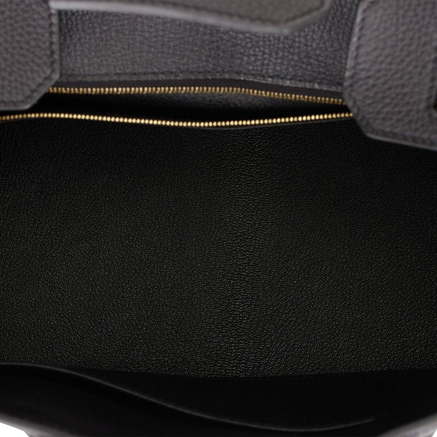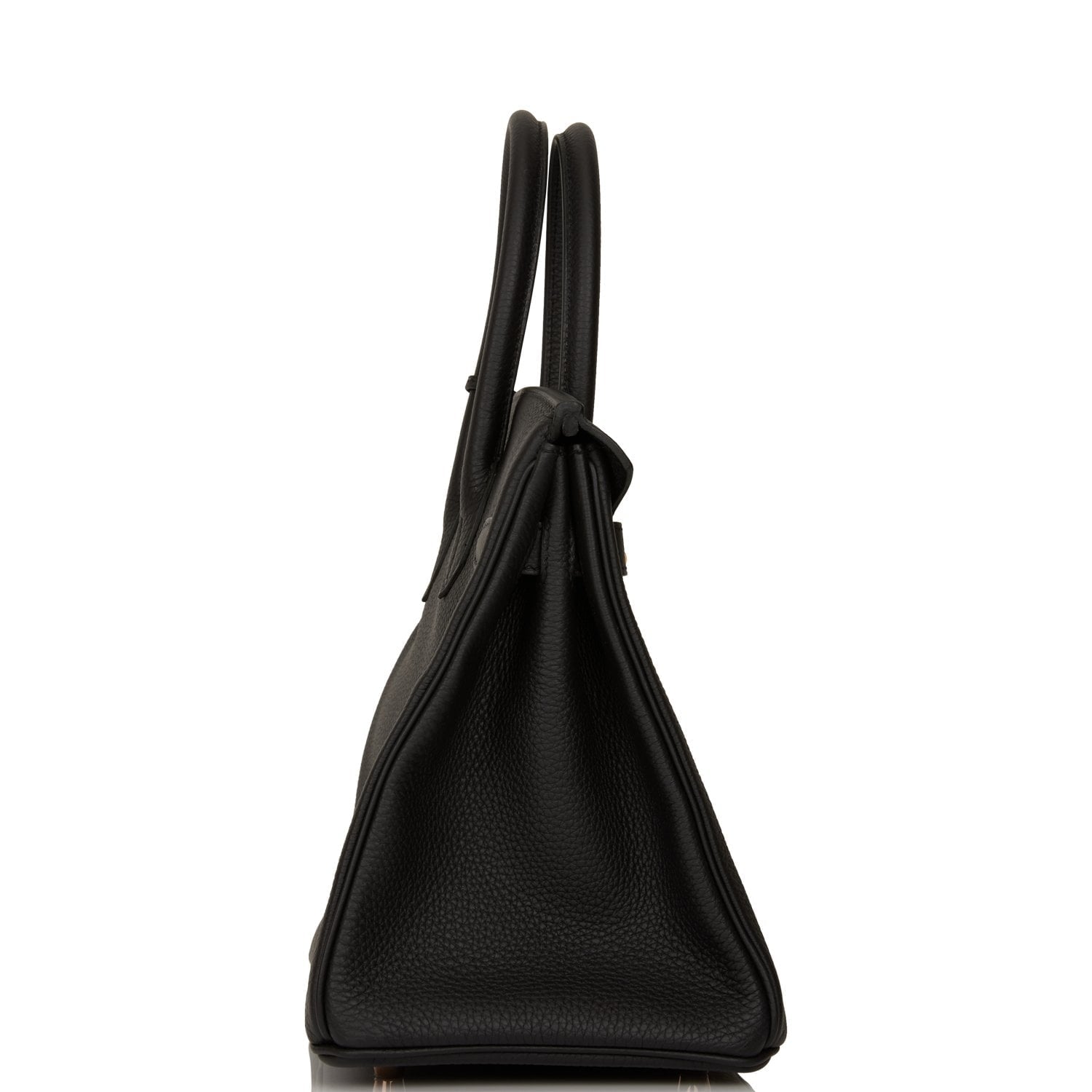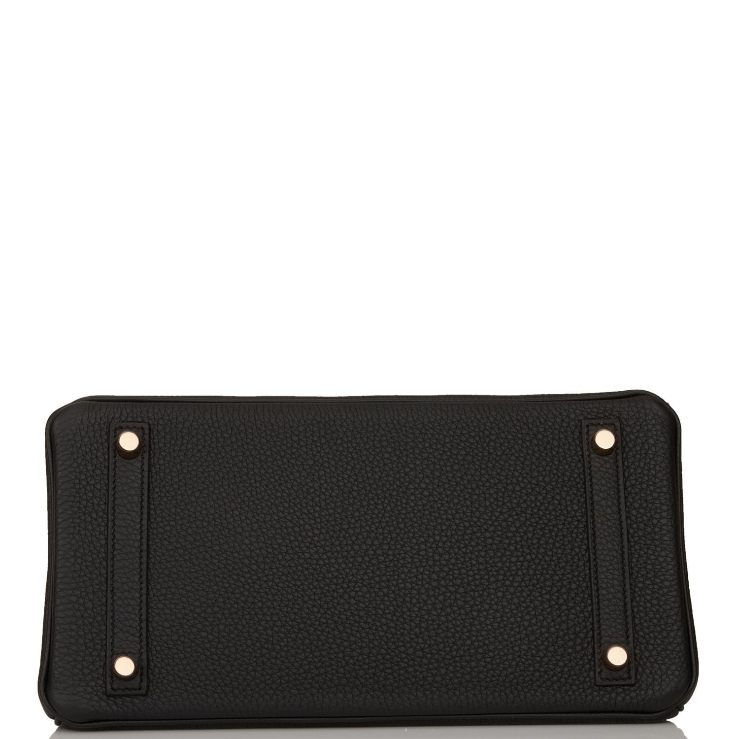 This Birkin is in Black togo leather with rose gold hardware and has tonal stitching, front flap, two straps with center toggle closure, clochette with lock and two keys, and double rolled handles.