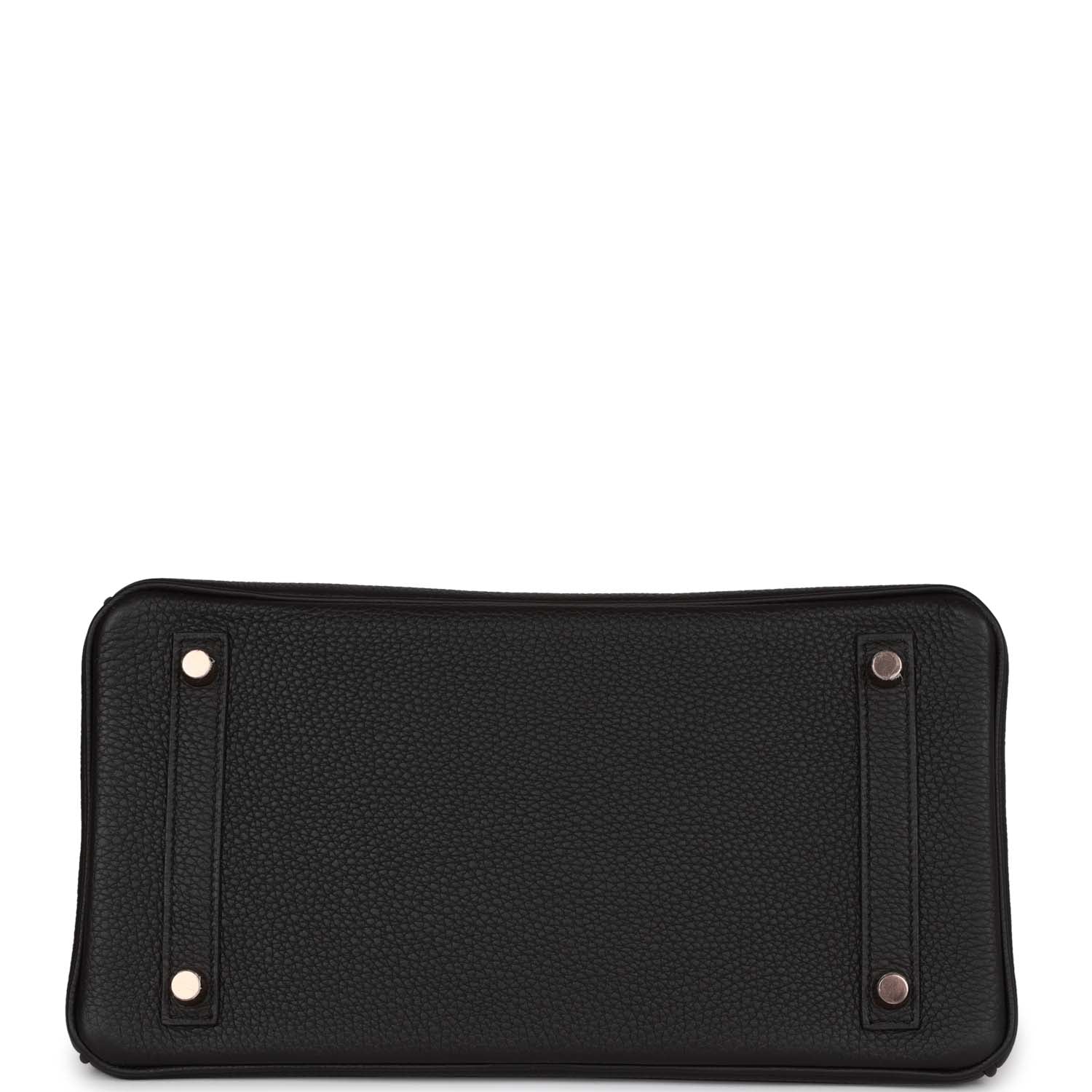 This Birkin is in Black togo leather with rose gold hardware and has tonal stitching, front flap, two straps with center toggle closure, clochette with lock and two keys, and double rolled handles.