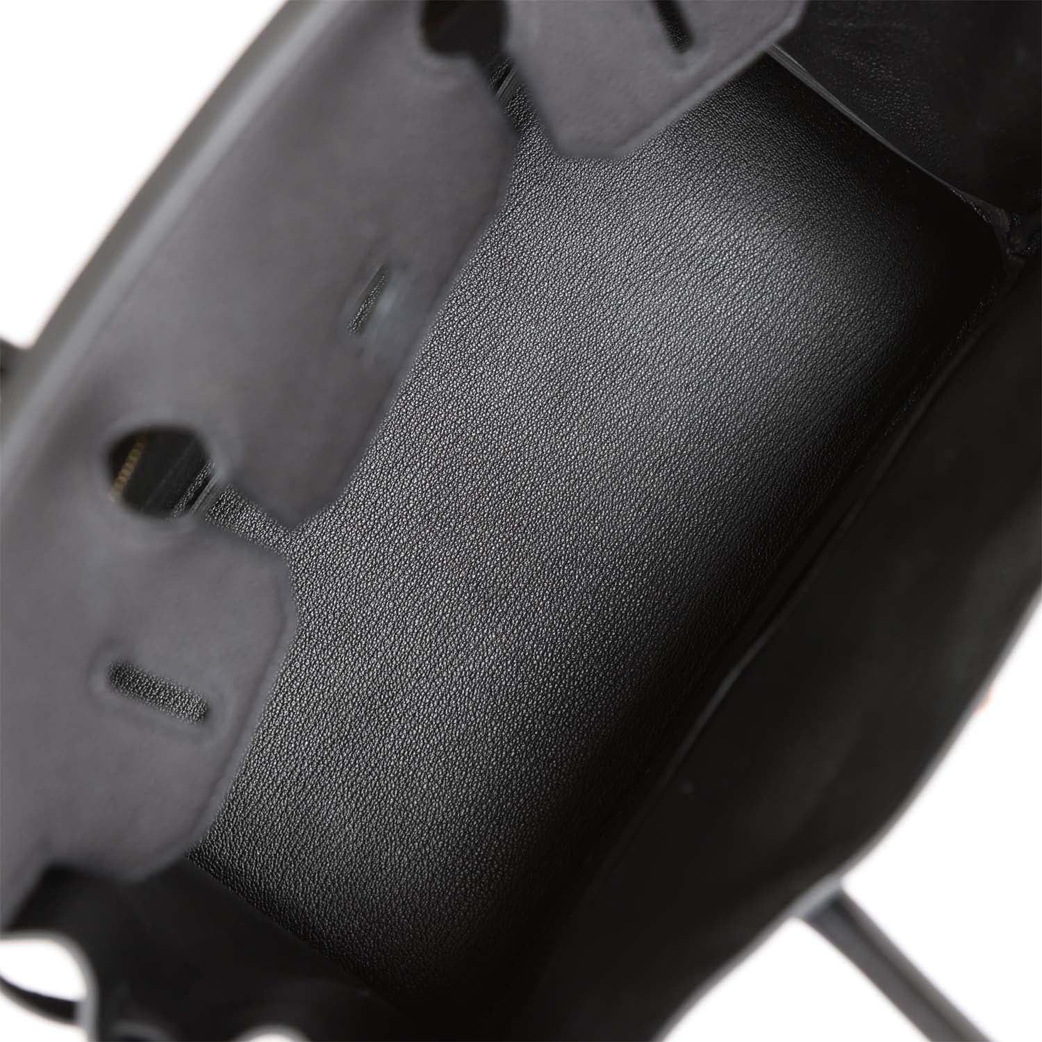 The interior is lined with black chevre and has one zip pocket with an Hermes engraved zipper pull and an open pocket on the opposite side.