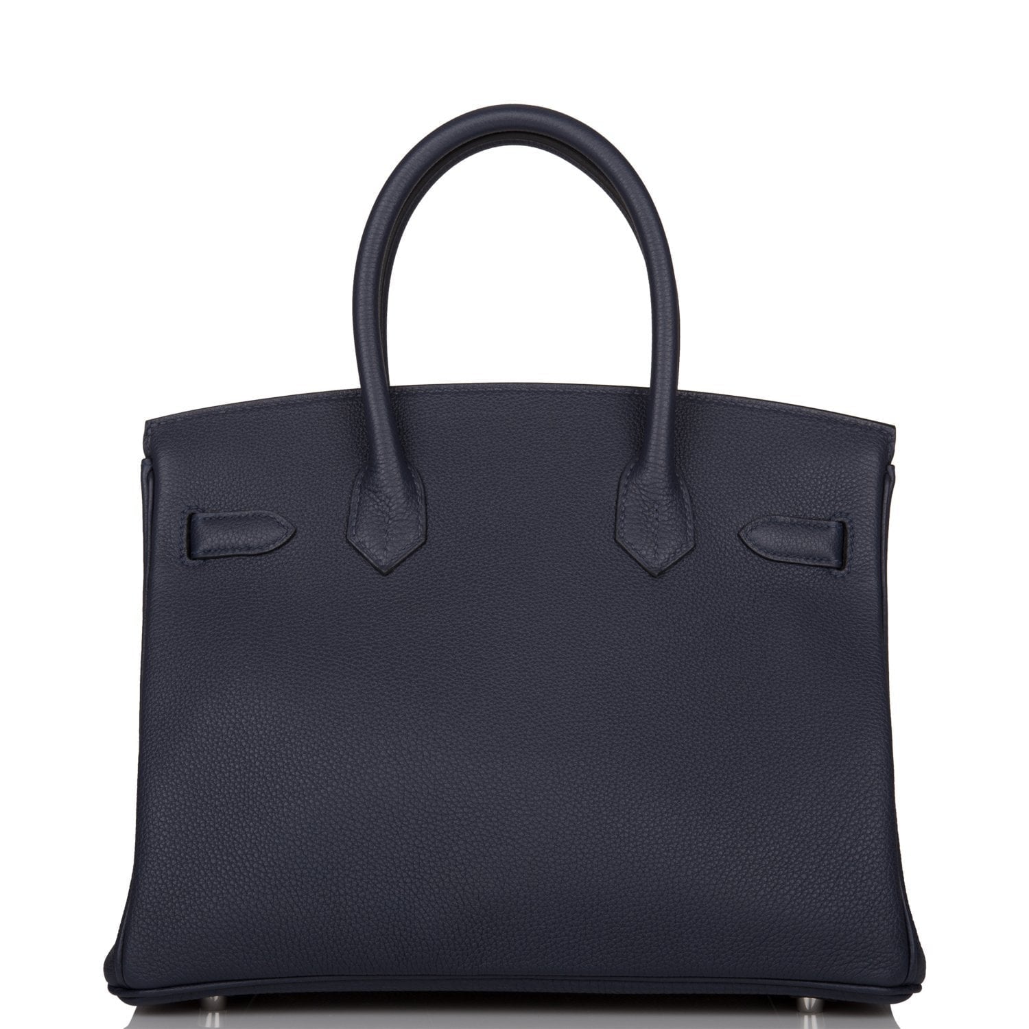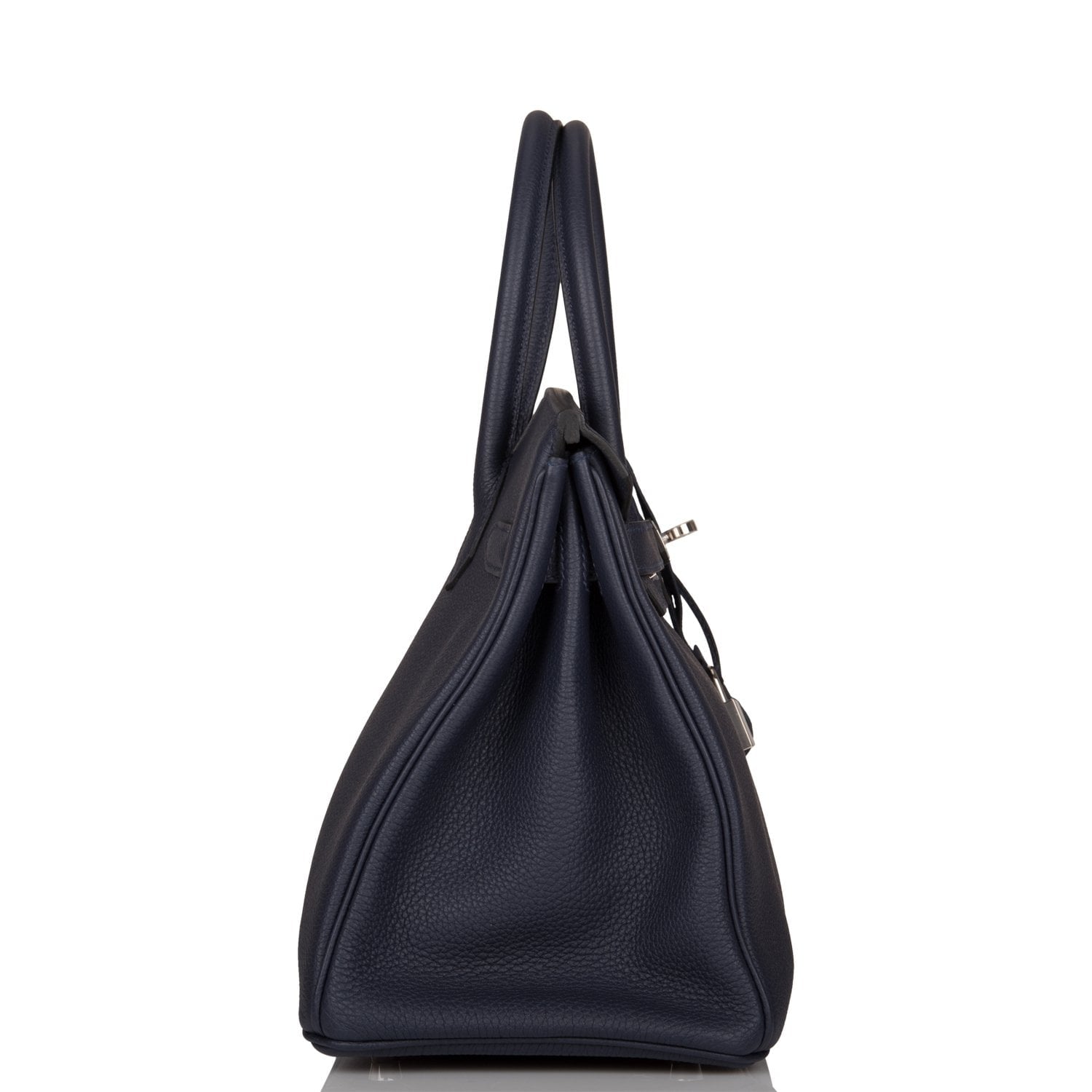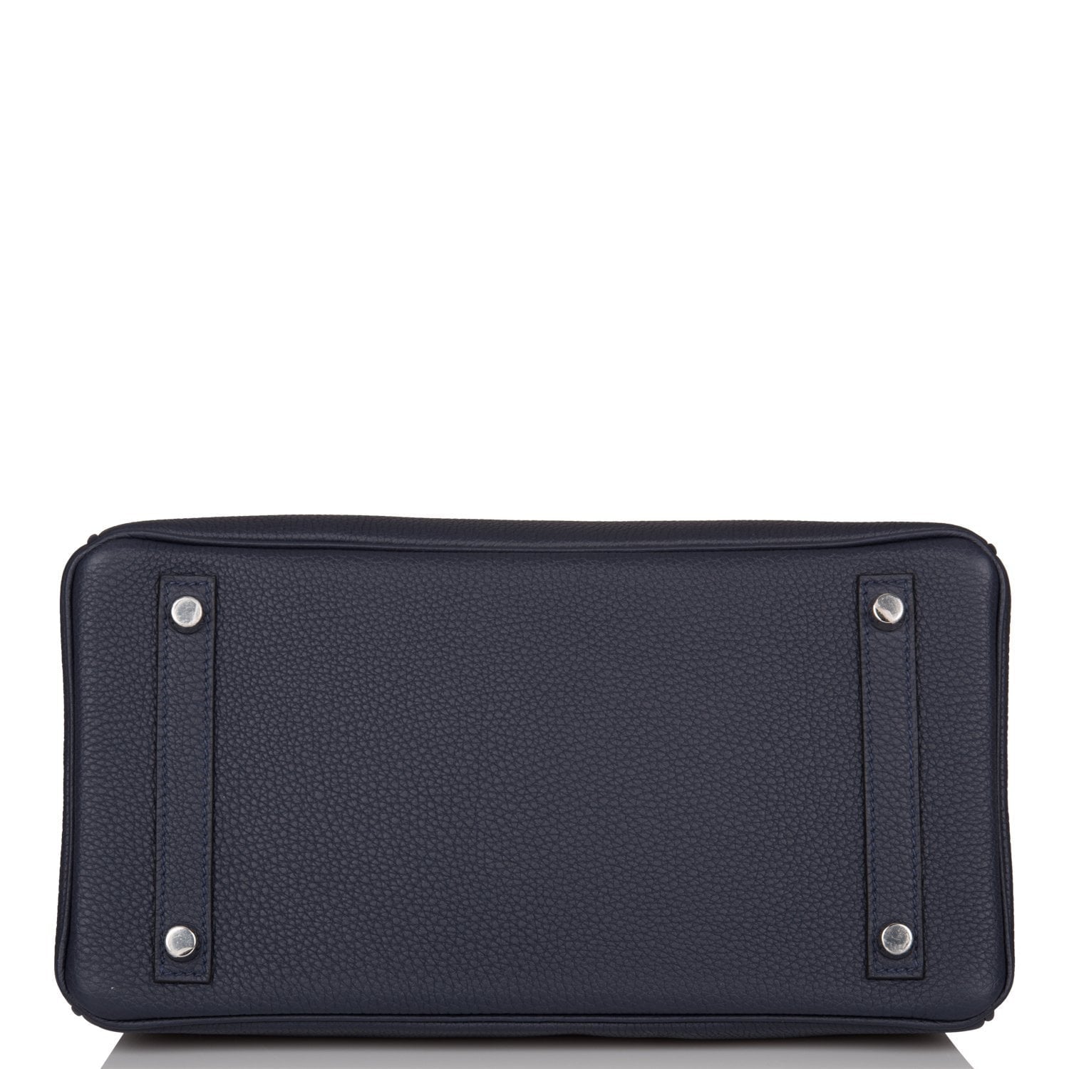 This Birkin is in Bleu Nuit togo leather with palladium hardware and has tonal stitching, front flap, two straps with center toggle closure, clochette with lock and two keys, and double rolled handles.