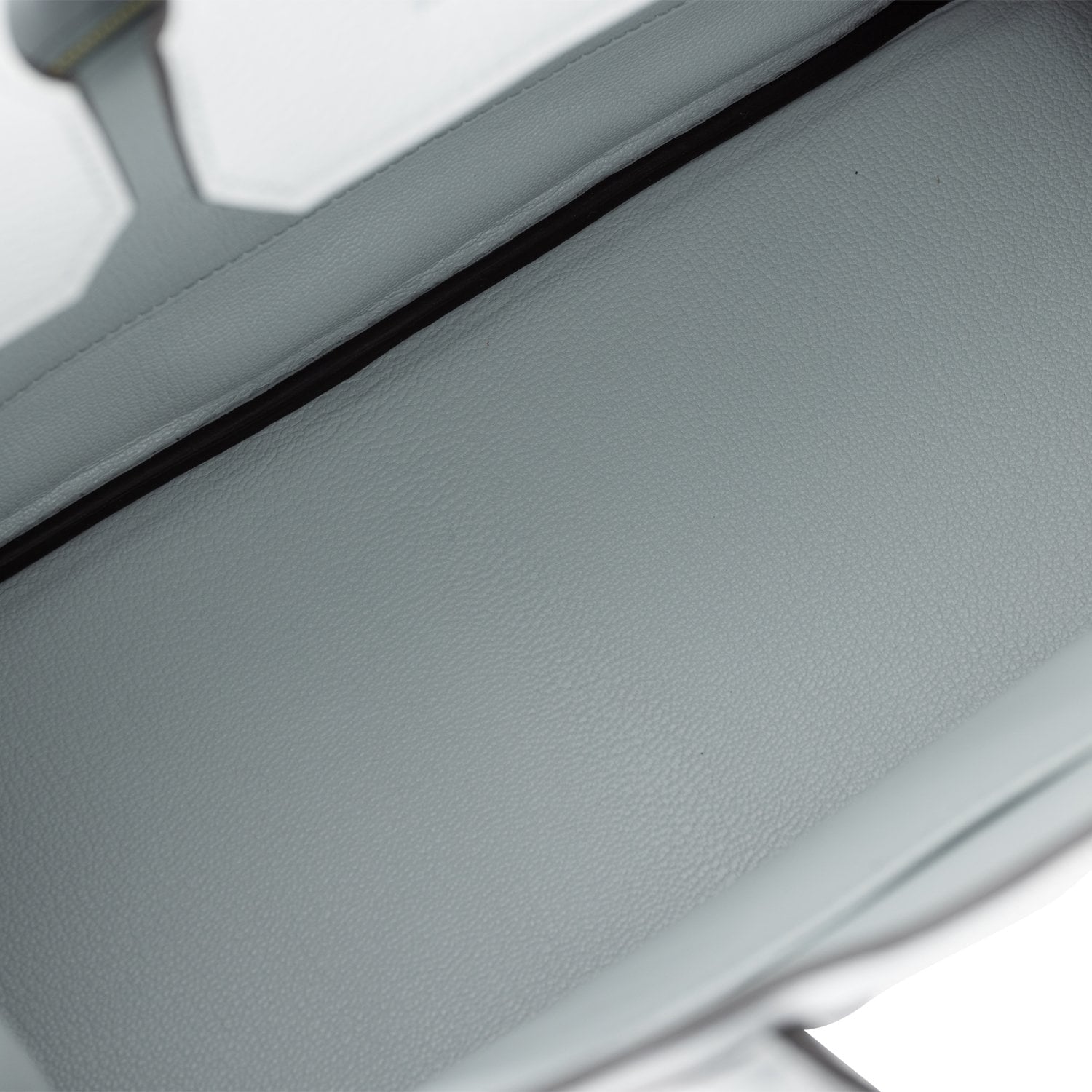 The interior is lined with Bleu Pale chevre and has one zip pocket with an Hermes engraved zipper pull and an open pocket on the opposite side.