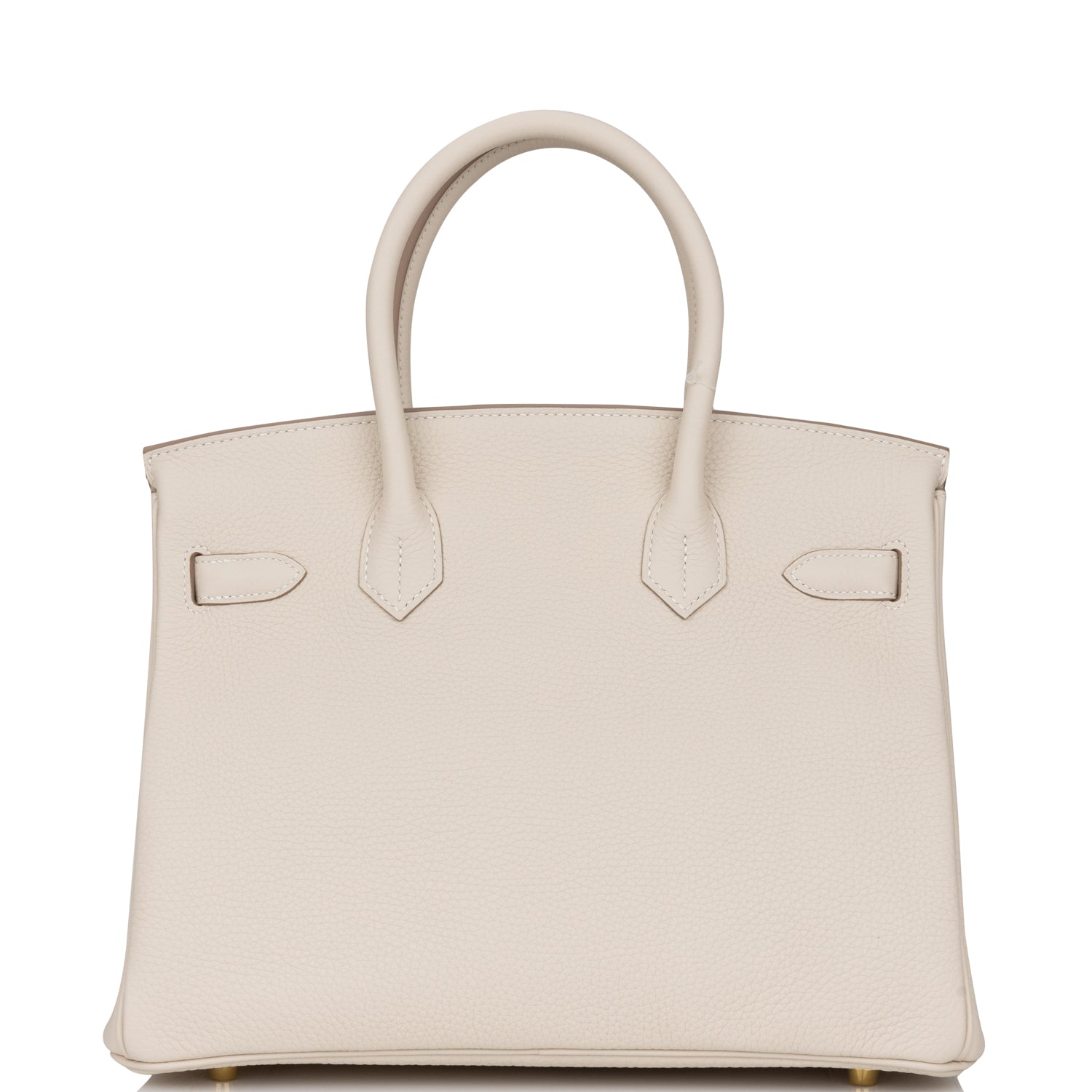 This Birkin is in Craie clemence leather with gold hardware and has tonal stitching, front flap, two straps with center toggle closure, clochette with lock and two keys, and double rolled handles.
